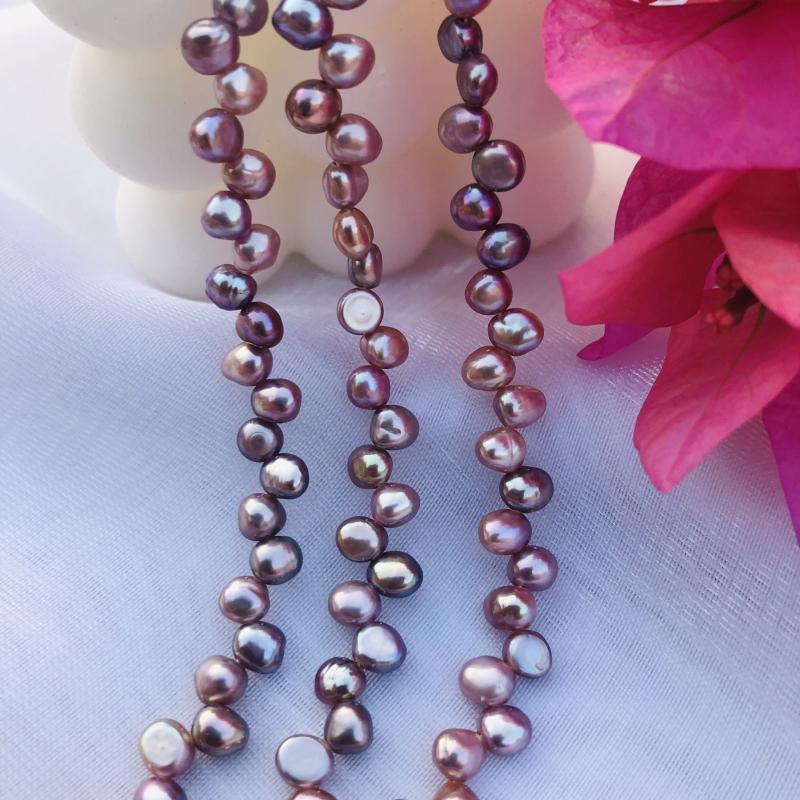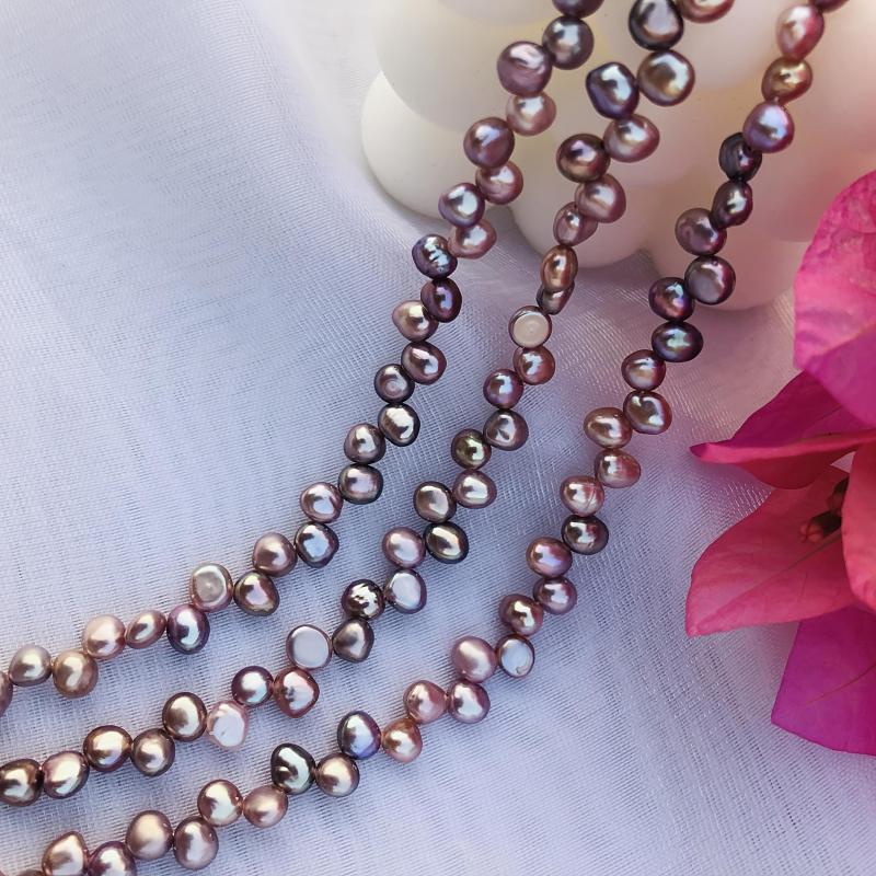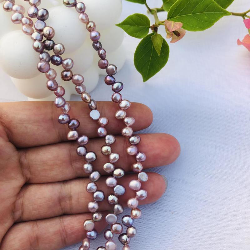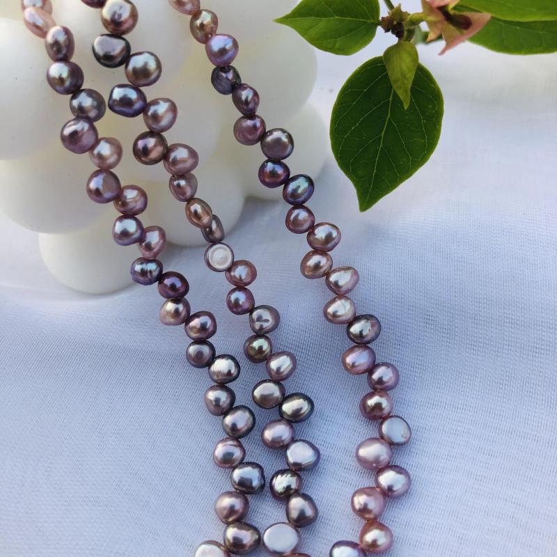 This 7.08in necklace features high quality 4.5mm layered bohemian style natural purple keshi freshwater pearls. Perfect for a unique and elegant look.