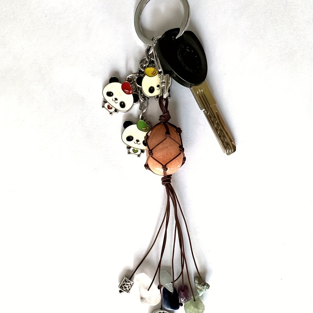 Add a touch of boho charm to your accessories with this macrame tumbled crystal healing gemstone keychain. Crafted with intricate details, this keychain is perfect for bag hanging or as an ornament.