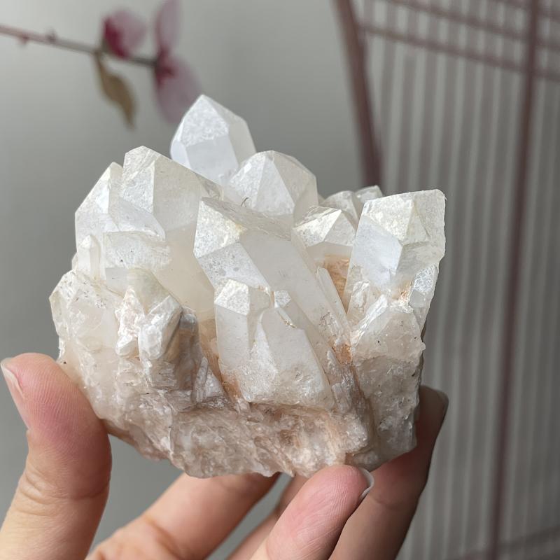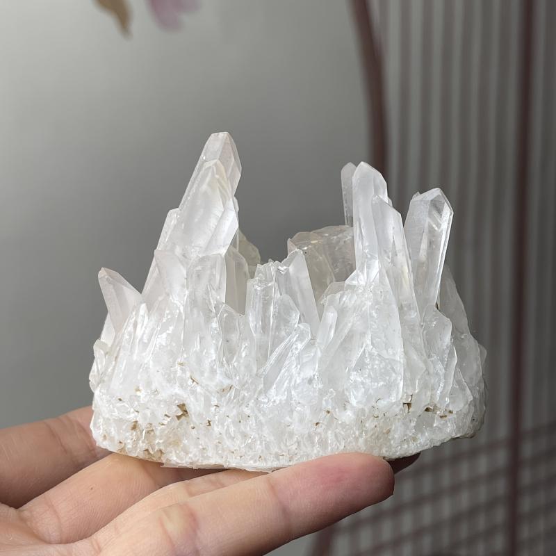 This Clear Quartz Cluster is perfect for boho style jewelry, faceted home decor, and festive Christmas decorations. Add a touch of elegance and positive energy to any space with this beautiful crystal.