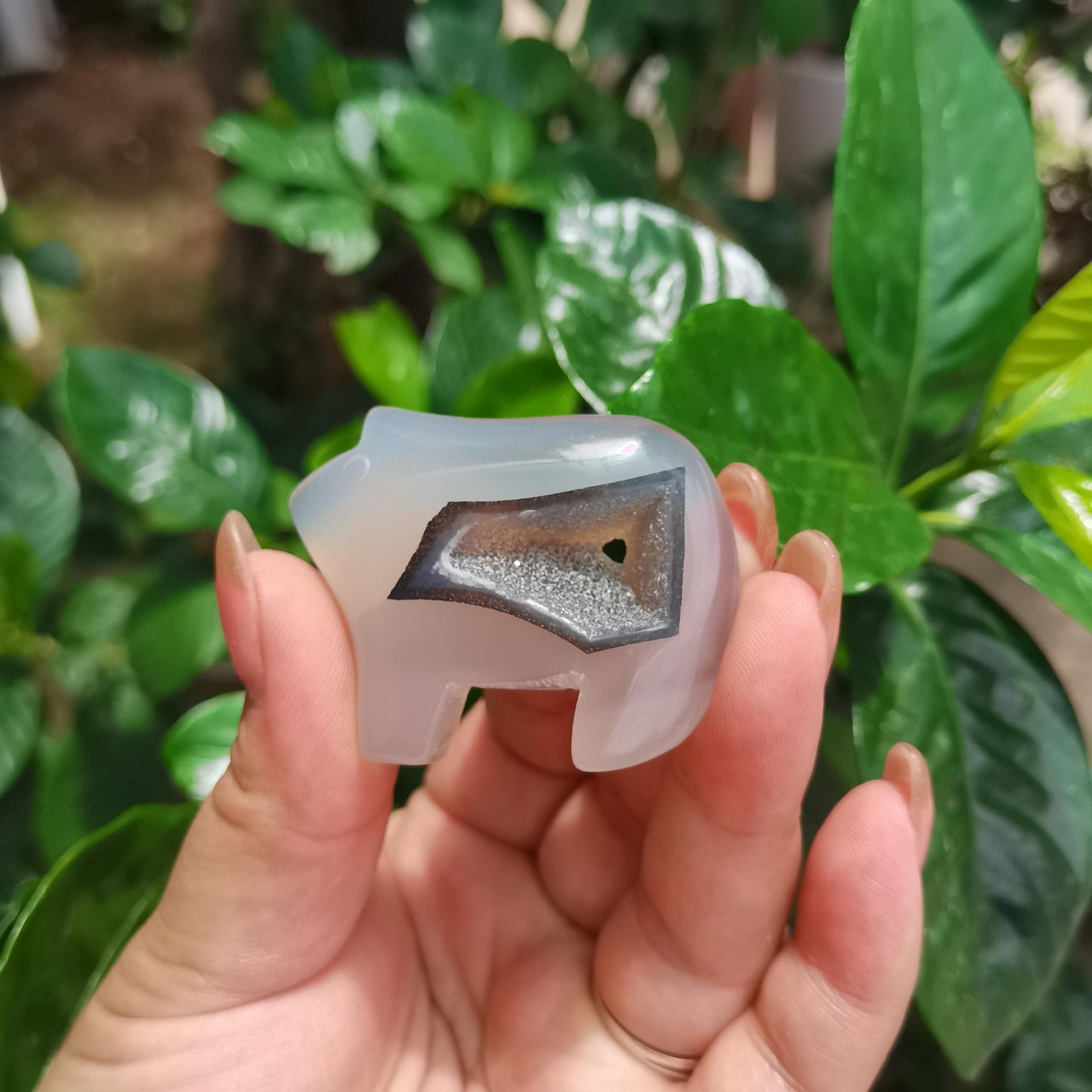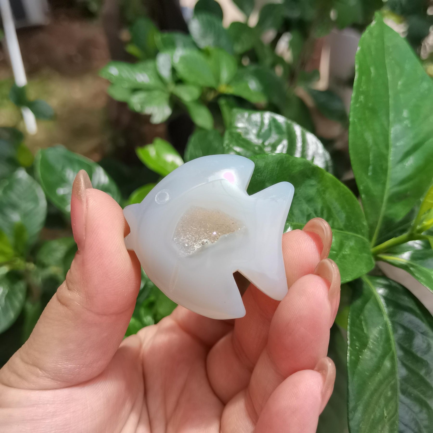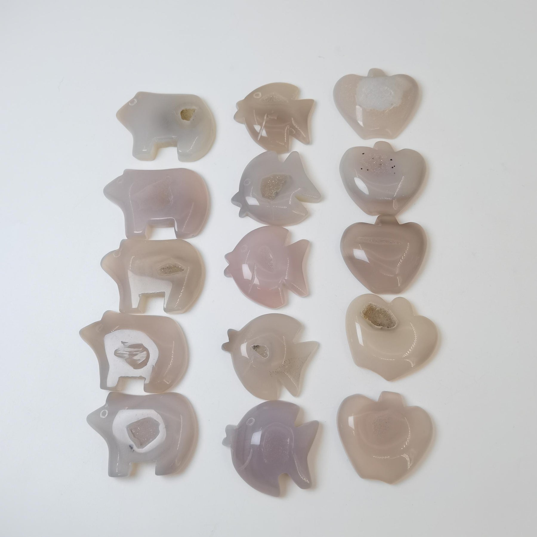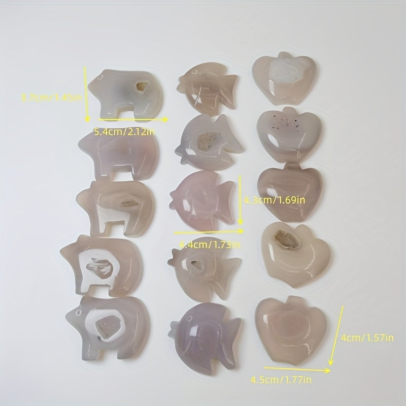 Enhance your tabletop with this exquisite crystal carving featuring fish, bear, and fruit designs. Perfect for adding a touch of elegance to your home decor.