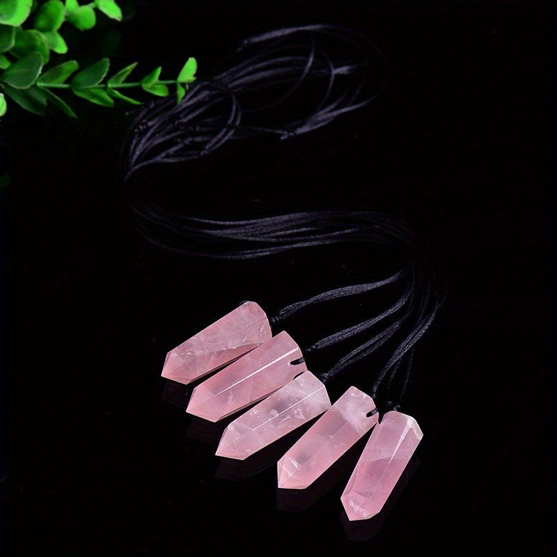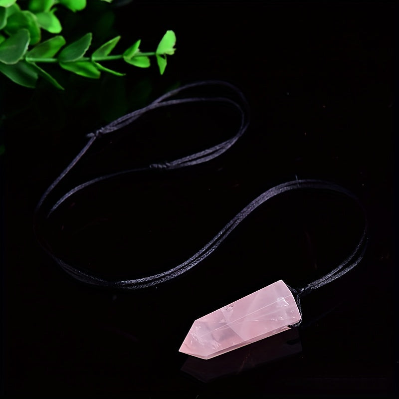 Add a touch of elegance to your look with this crystal pendant necklace. The hexagonal single pointed faceted column design adds a unique charm.