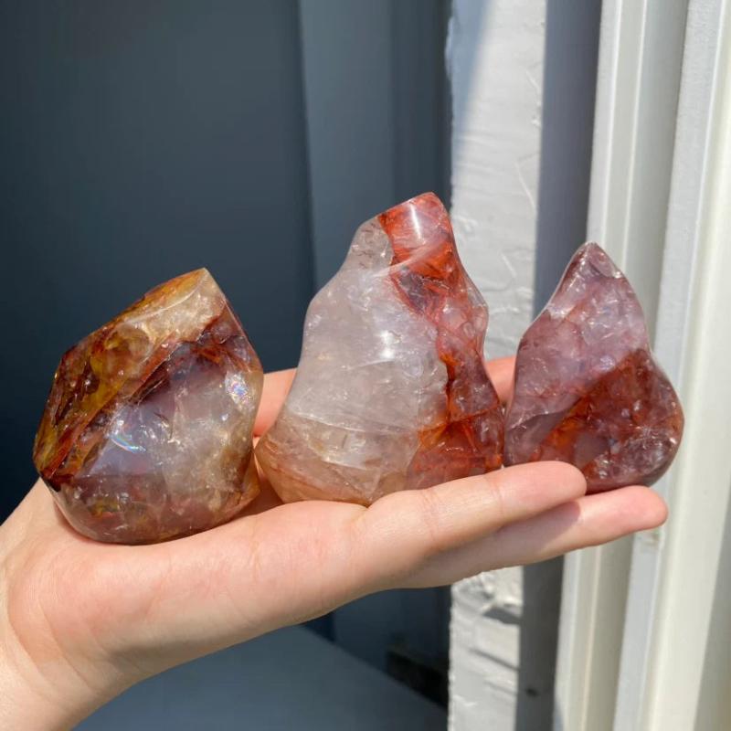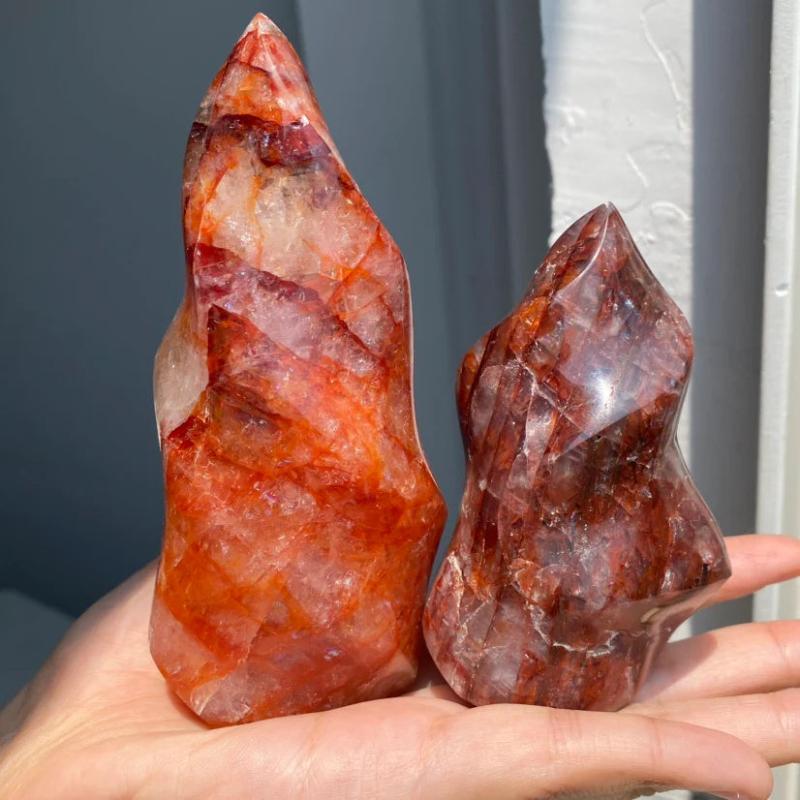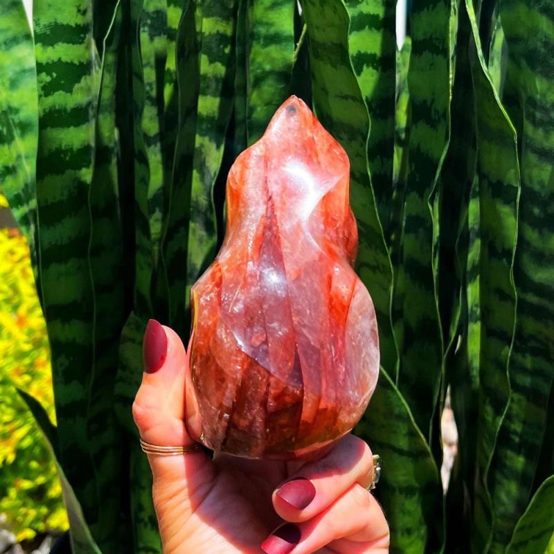 Enhance your space with this beautiful FIRE QUARTZ FLAME ORNAMENT made of natural crystal. Perfect for home, office, or tablet decoration.