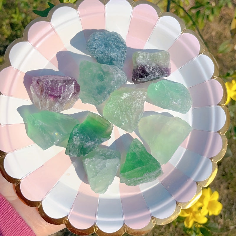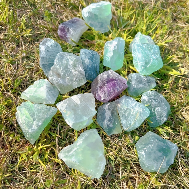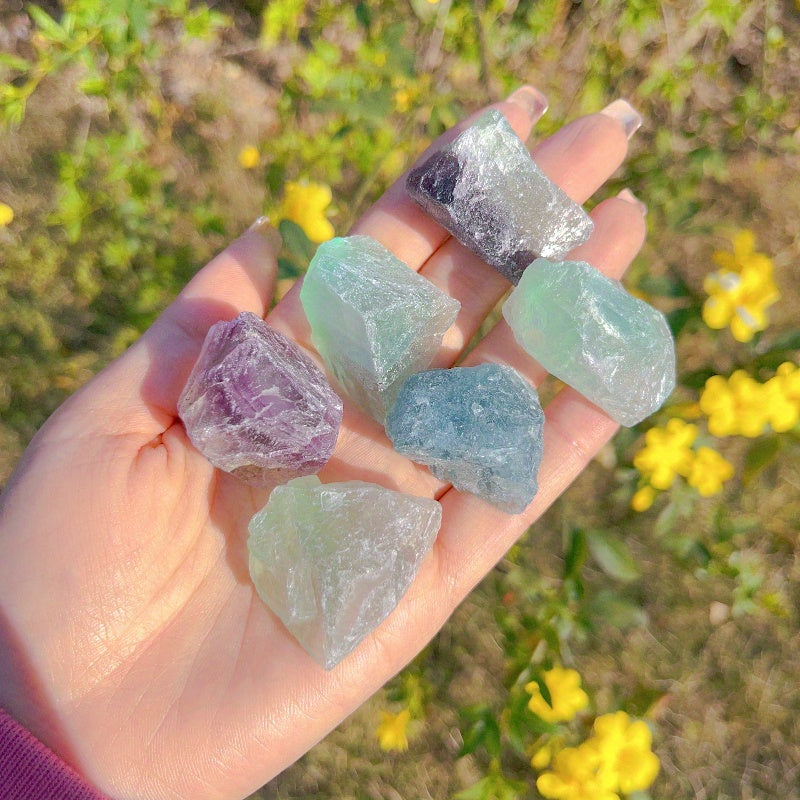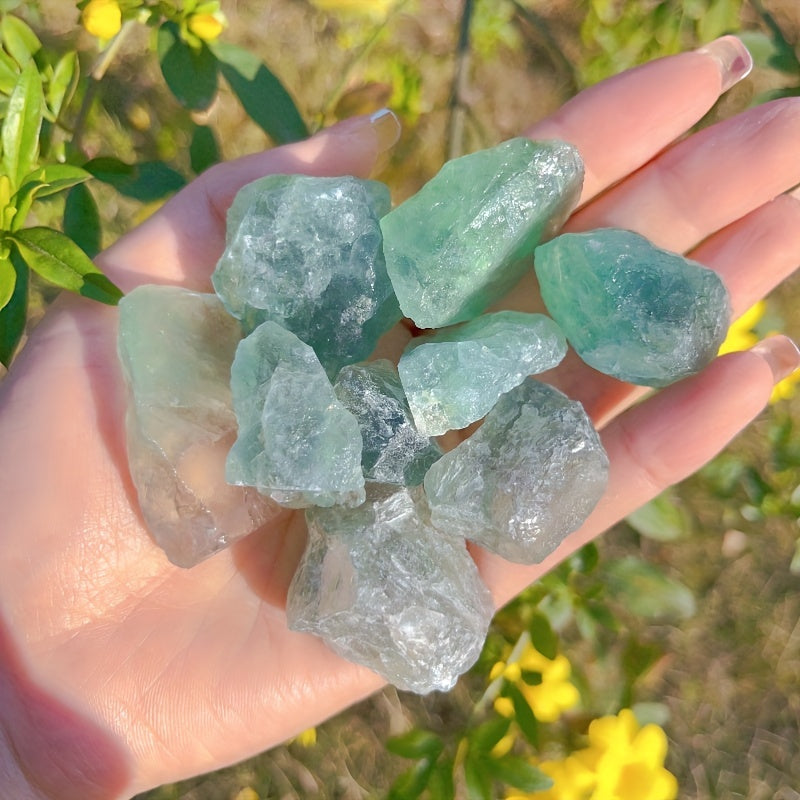 Experience the healing power of natural crystal fluorite rough stones. Perfect for jewelry making, tumbling, and crystal healing practices.