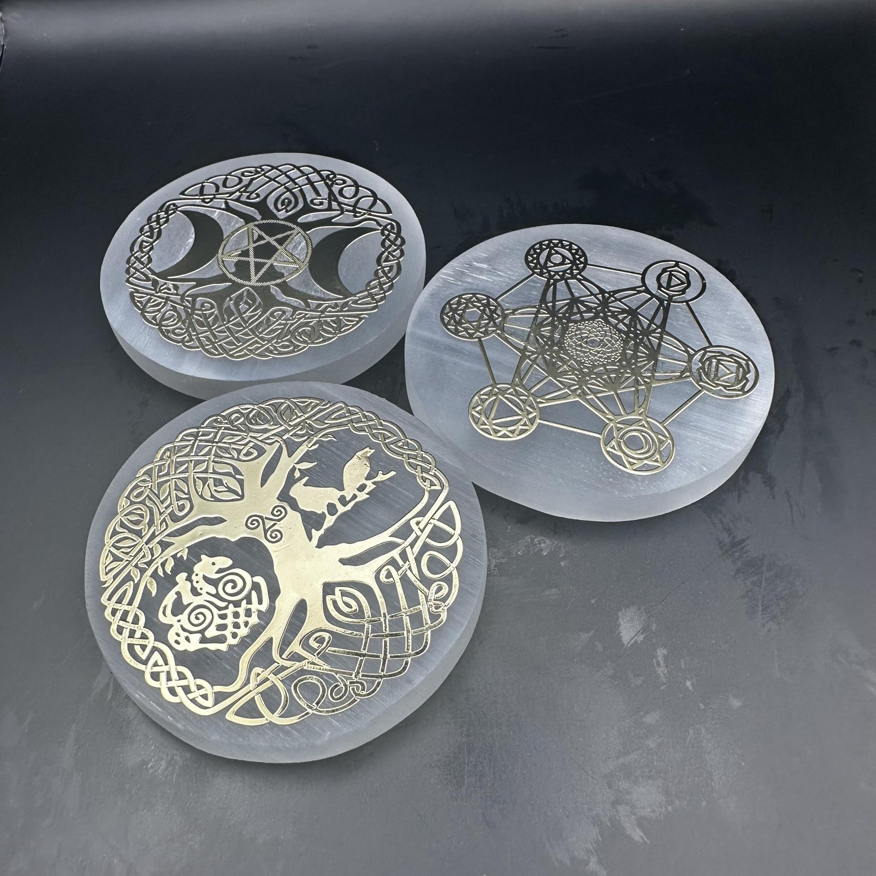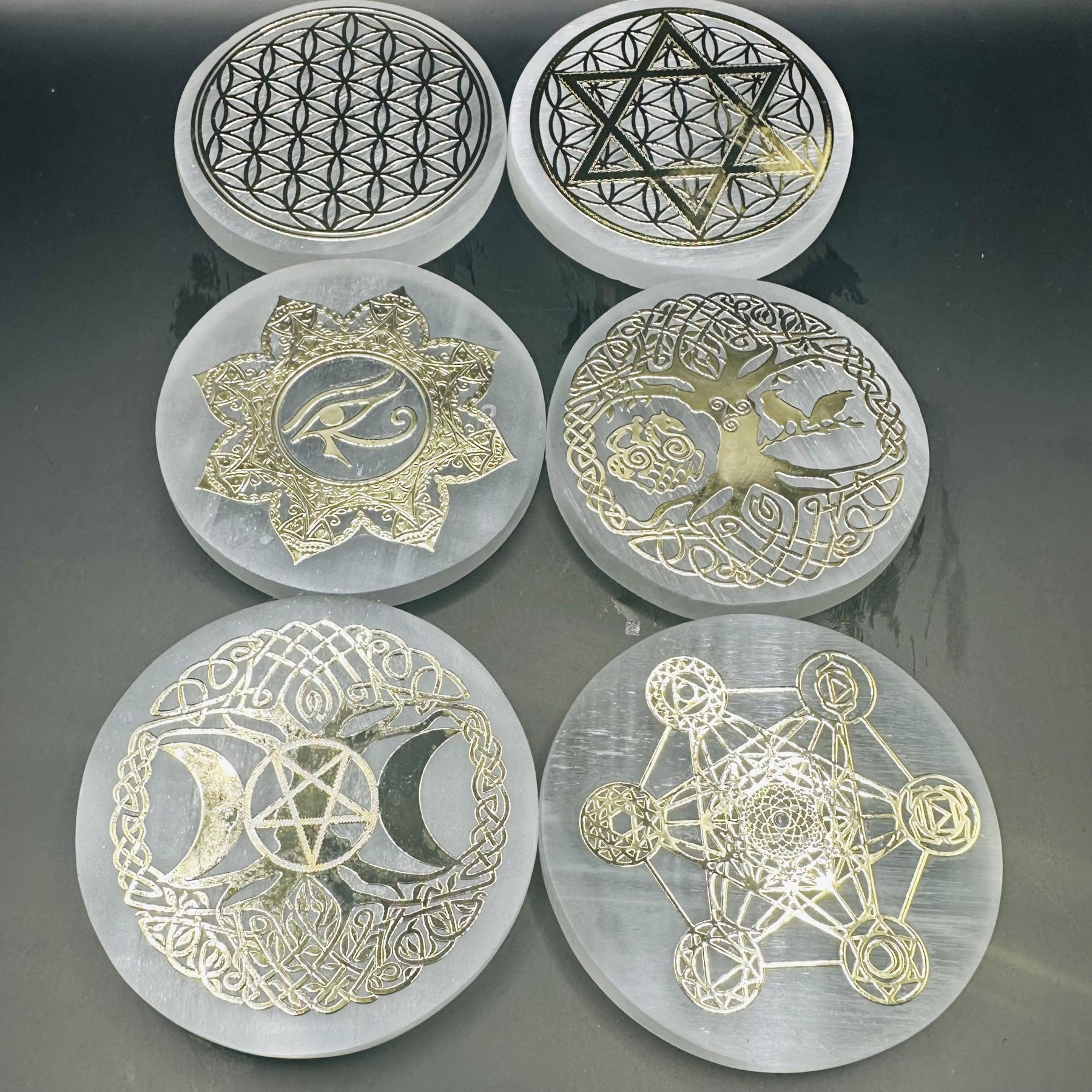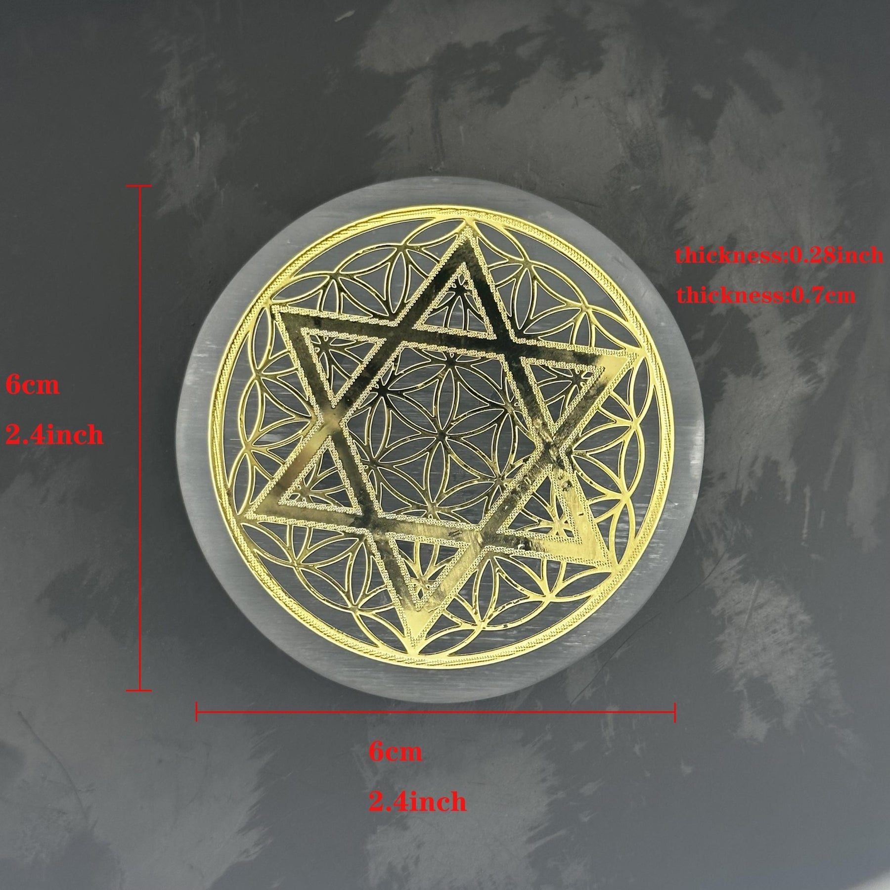 This unique tray features a variety of crystal stones in a boho design with star, moon, tree, and flower motifs. It is accented with golden patterns, making it a stylish addition to your jewelry accessories or desktop decor.
