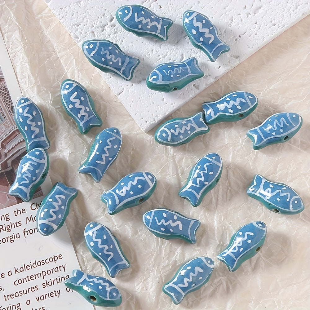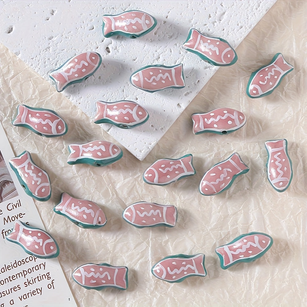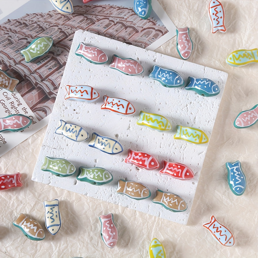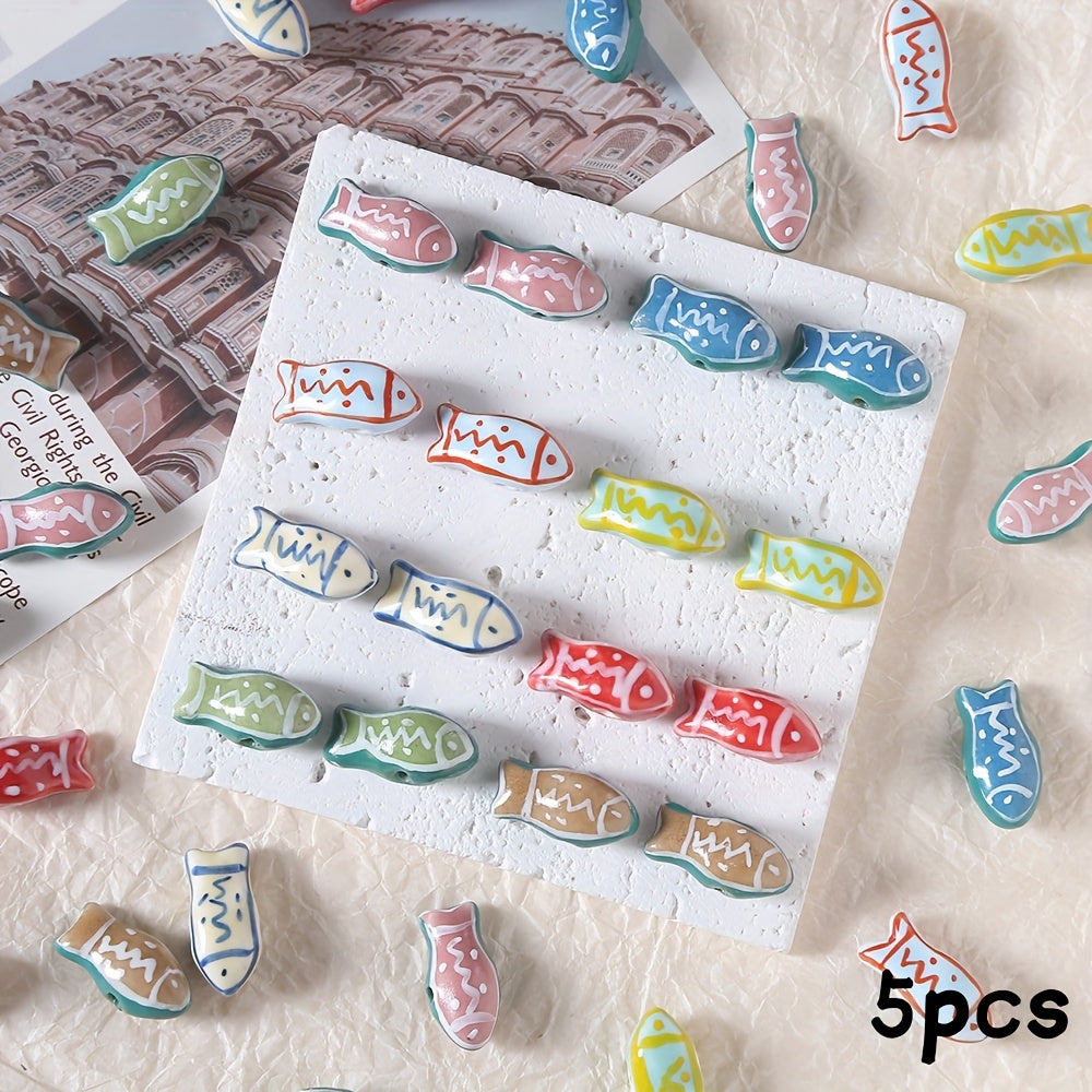This assortment includes 5 hand painted ceramic fish charms that are perfect for creating unique jewelry pieces, bag accessories, bracelets, and necklaces.