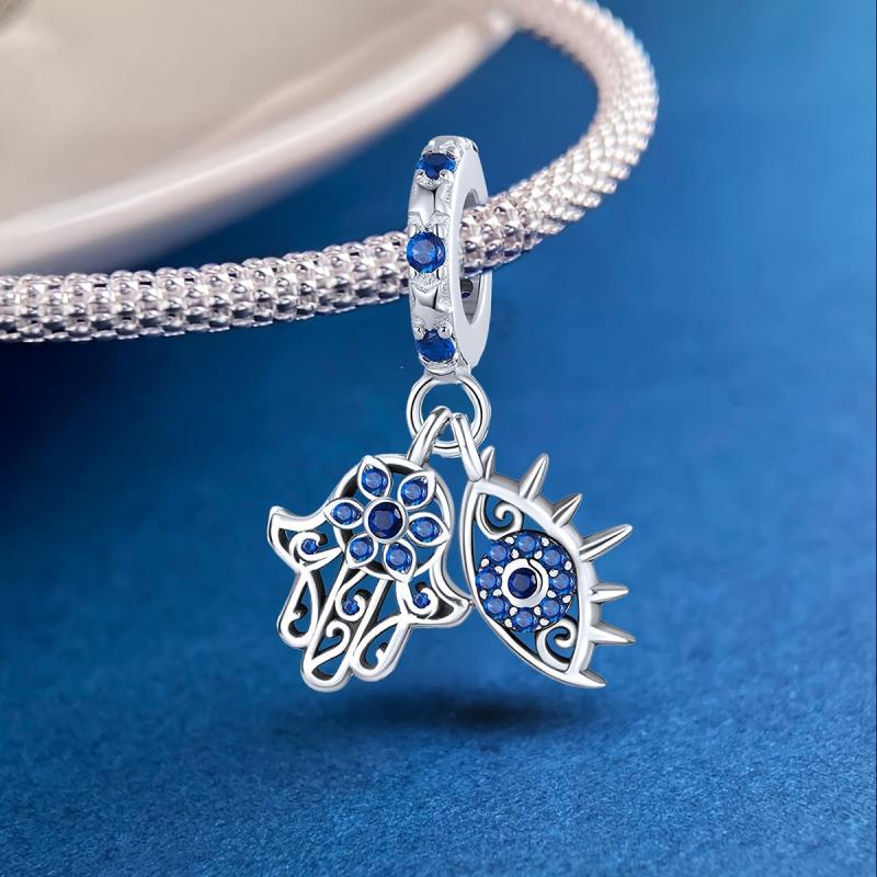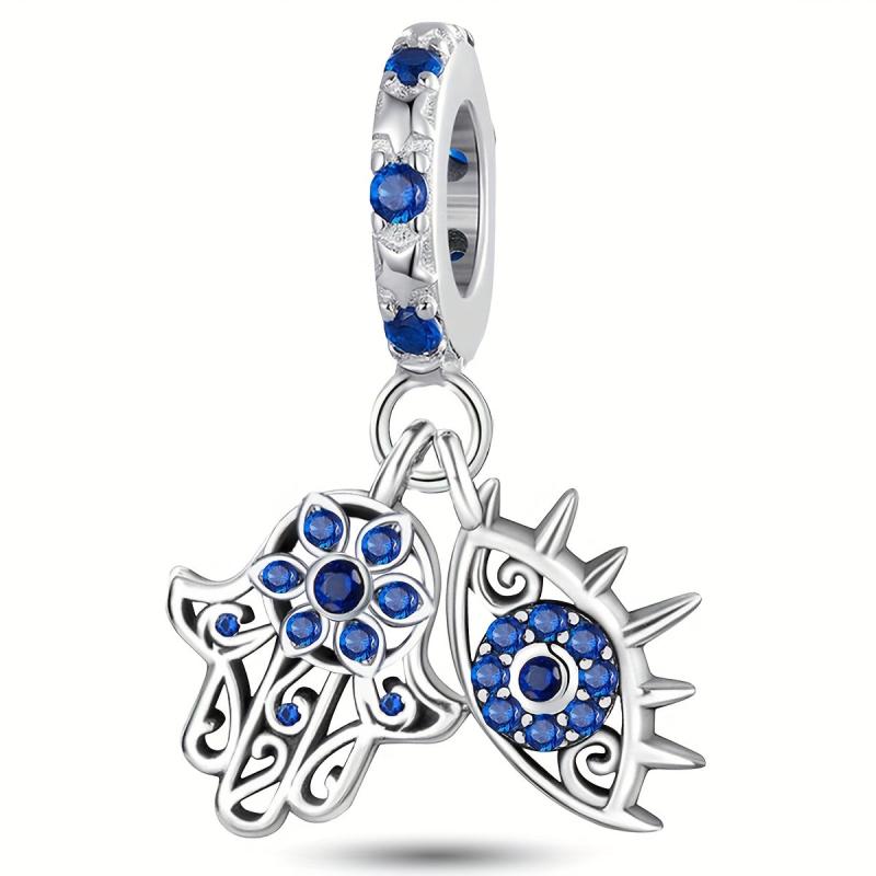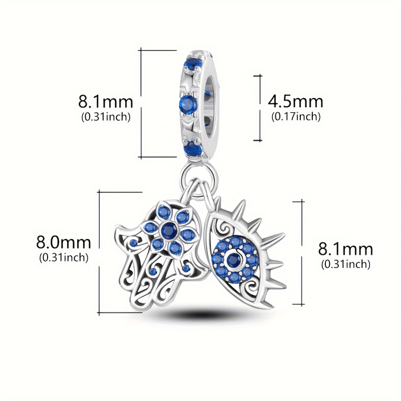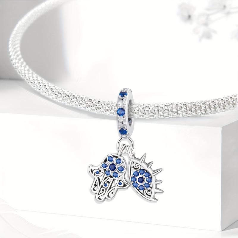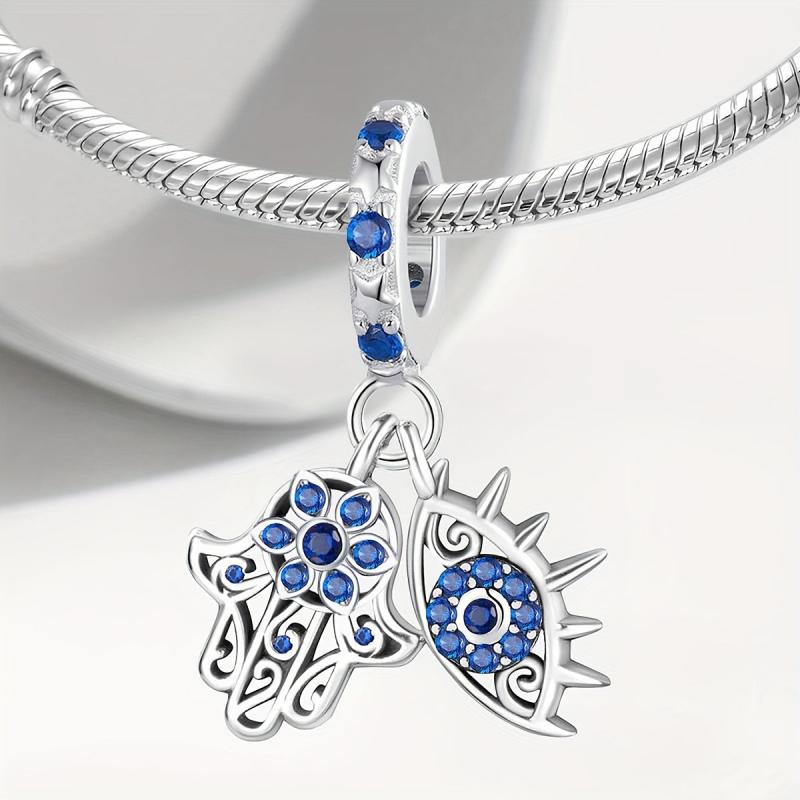 Beautiful 925 silver plated pendant designed with a hand protecting the devil's eye, perfect for creating unique bracelets, bangles, or necklaces. A thoughtful gift for mothers or women who enjoy crafting jewelry.