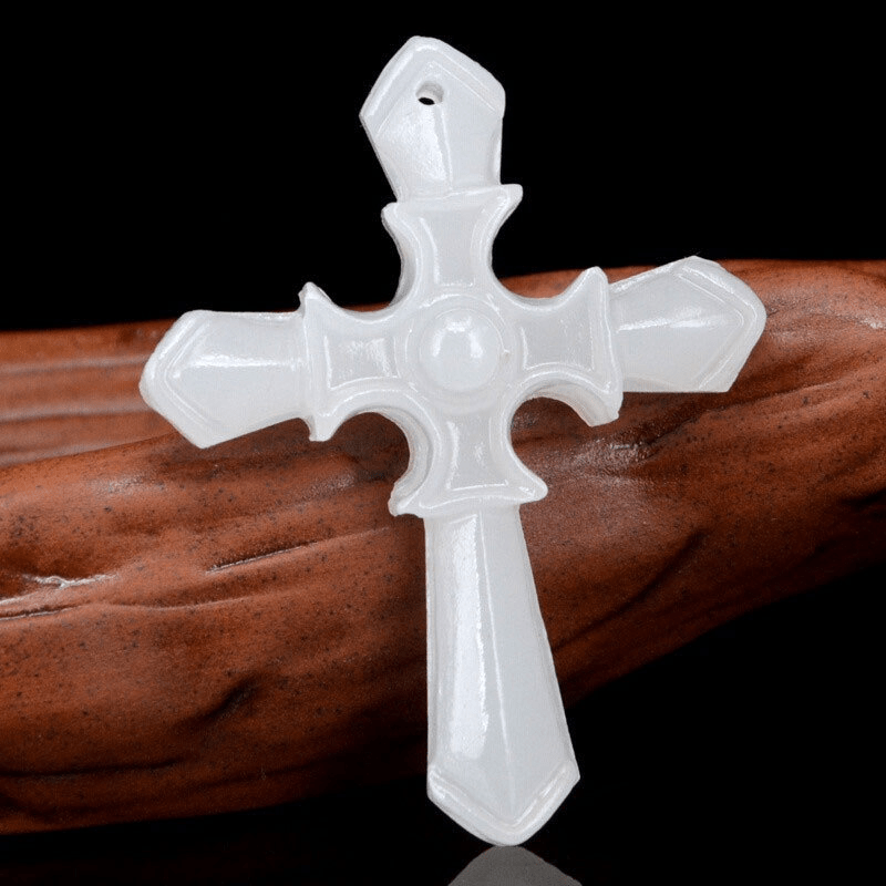 This elegant jade cross pendant necklace is a symbol of faith and beauty. Crafted from high-quality jade stone, it adds a touch of spirituality to your everyday style.