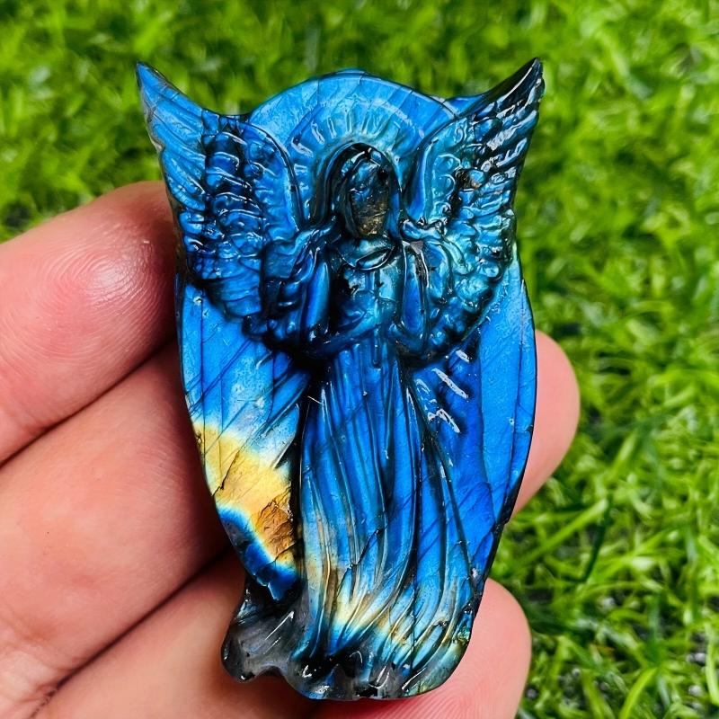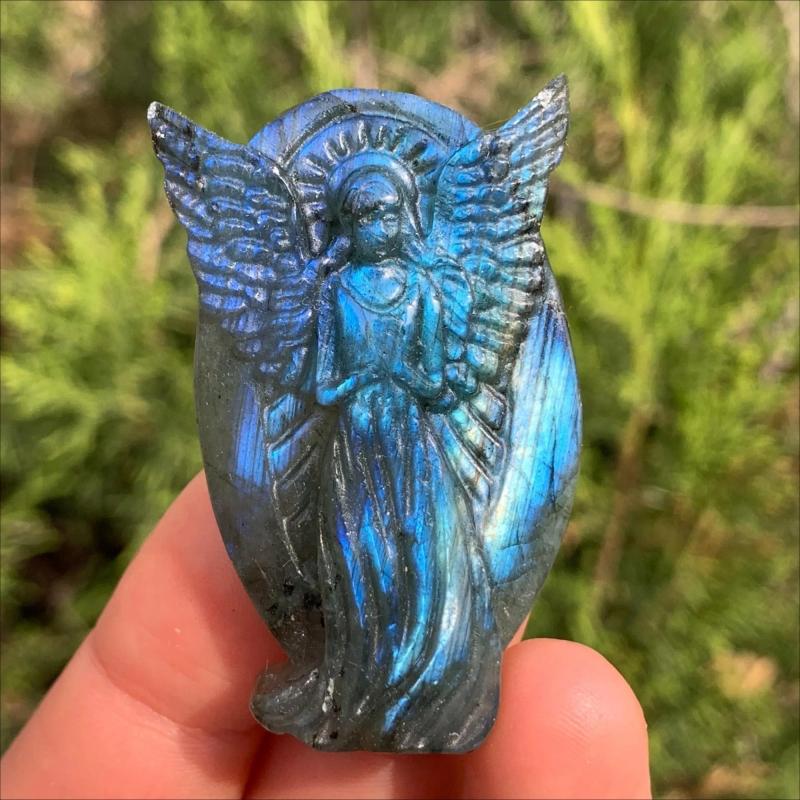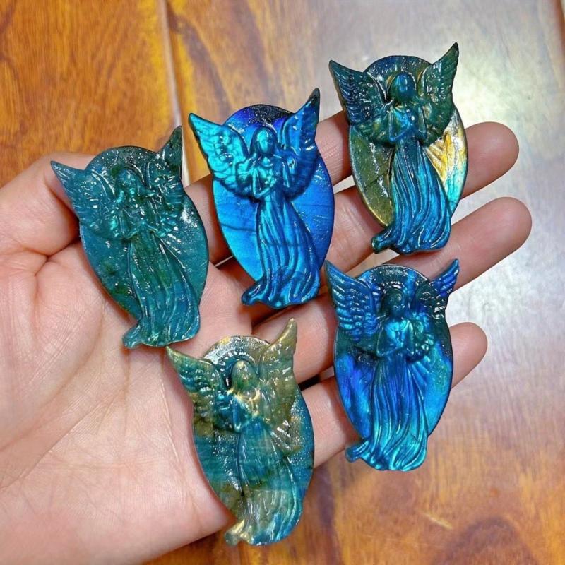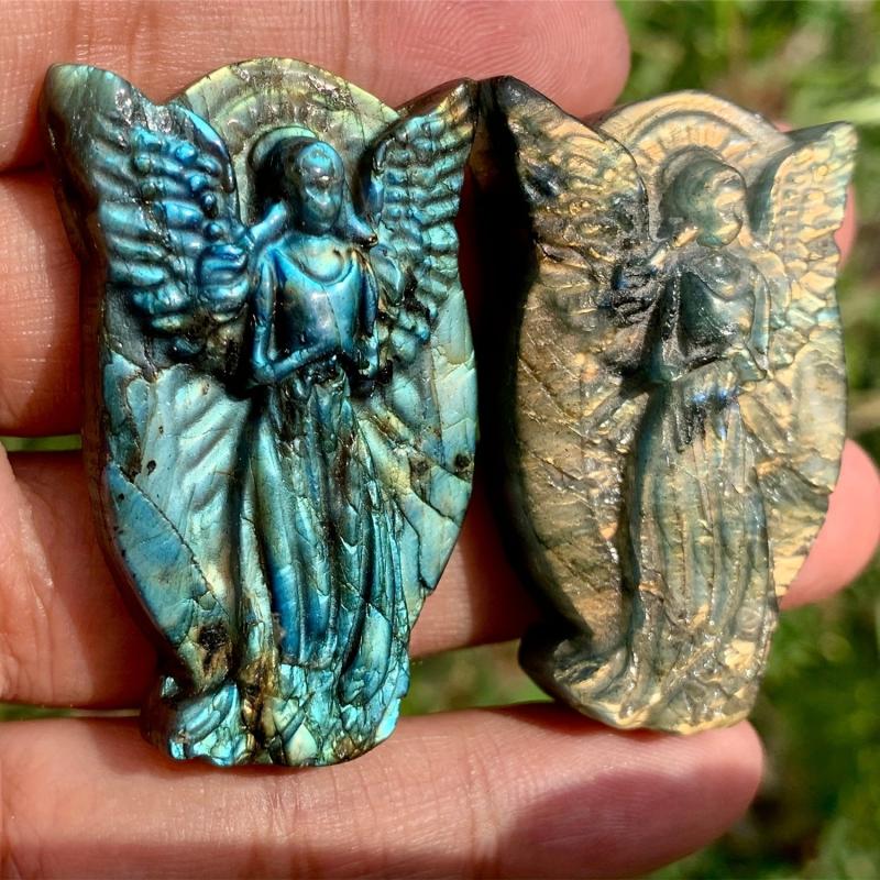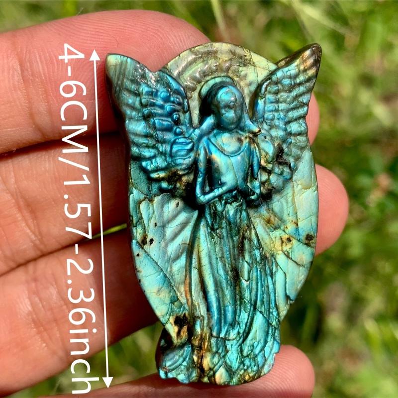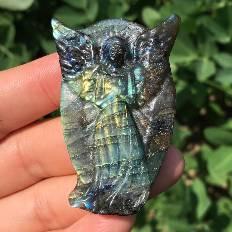 This natural Labradorite hand carved angel quartz crystal skull is a unique and beautiful addition to any home decor. It also makes a great choice for Father's gift giving.