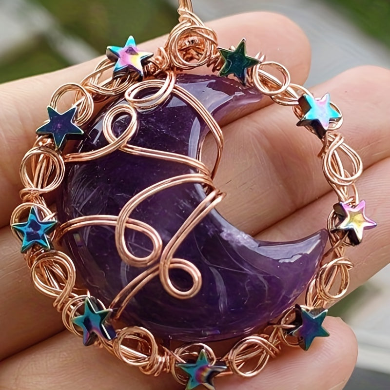 This moon-shaped Tree of Life pendant is crafted with mixed healing stone fragments, making it a beautiful addition to your jewelry projects. Create your own unique necklace with this crystal craft piece.