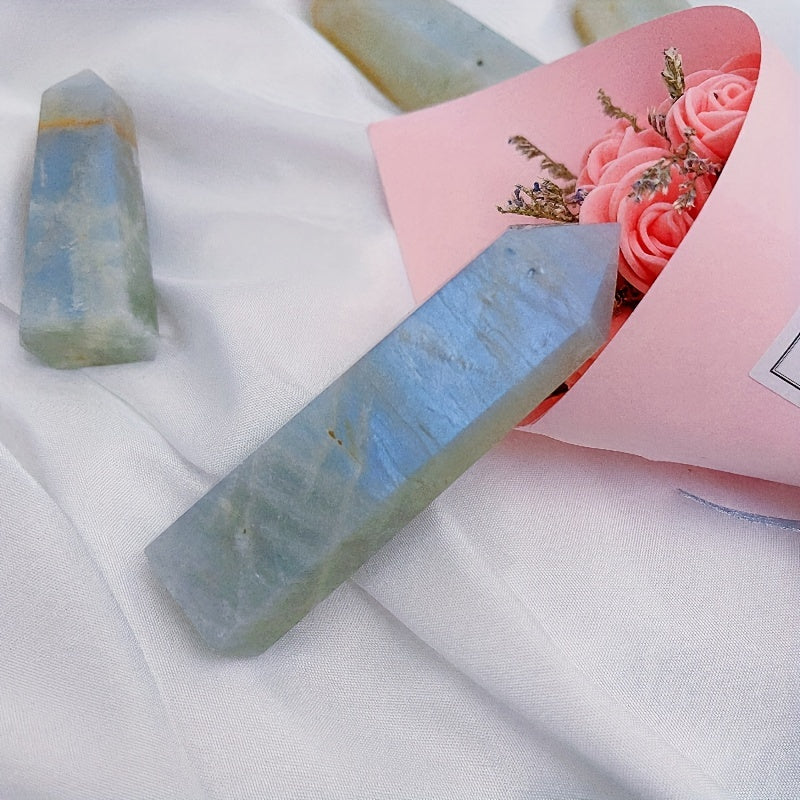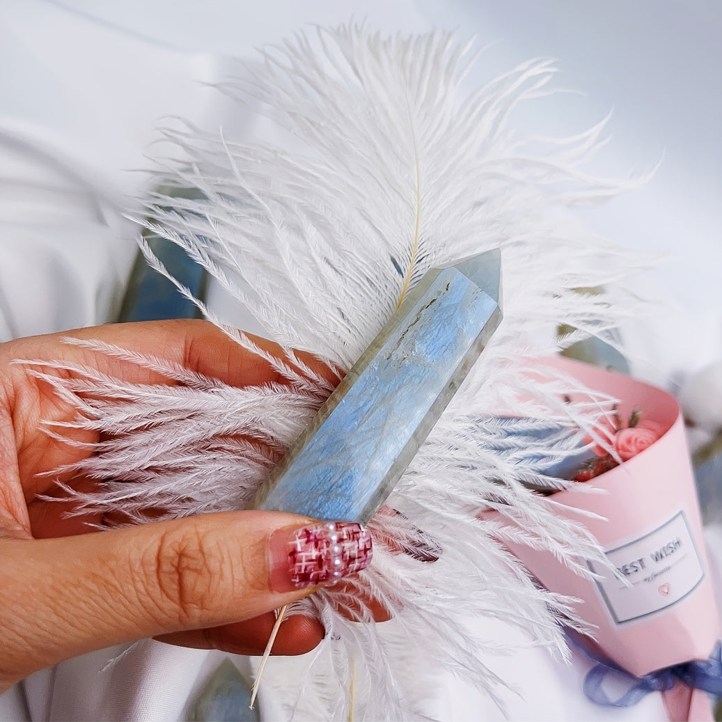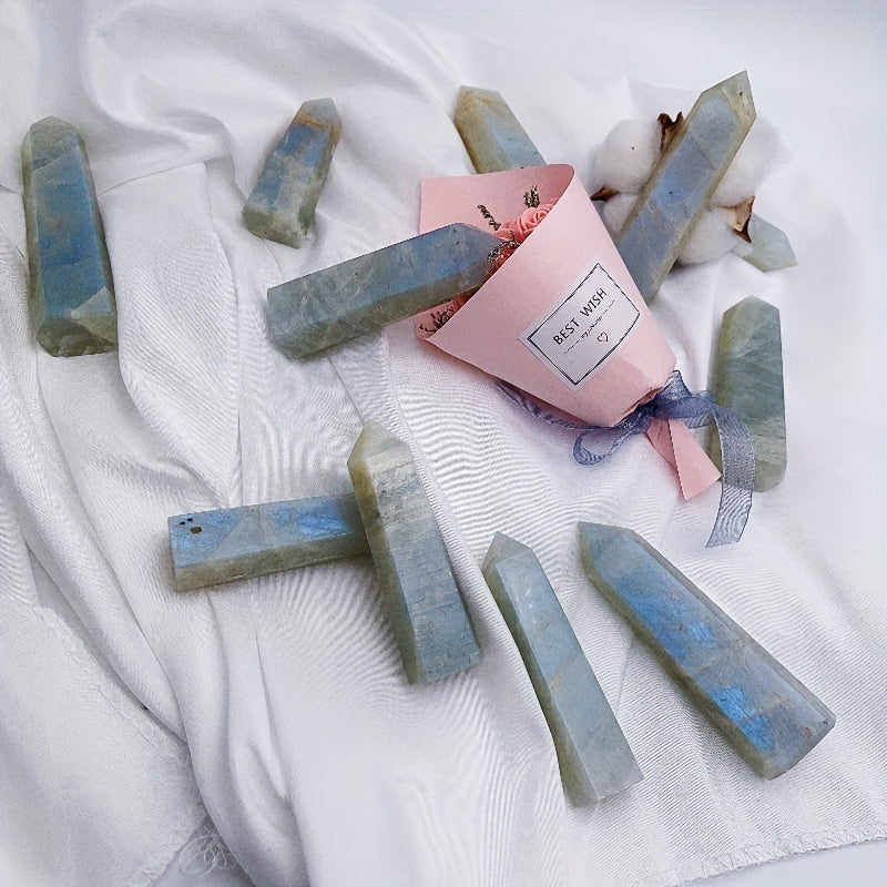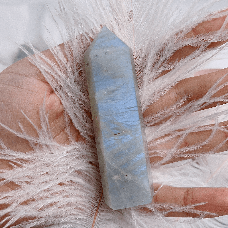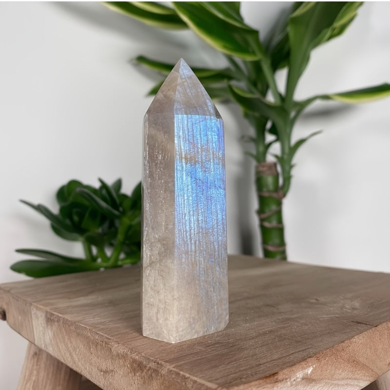 This 6-inch Moonstone Crystal Tower is perfect for Reiki healing, crystal grids, and meditation. It is made of natural moonstone crystal with healing properties.