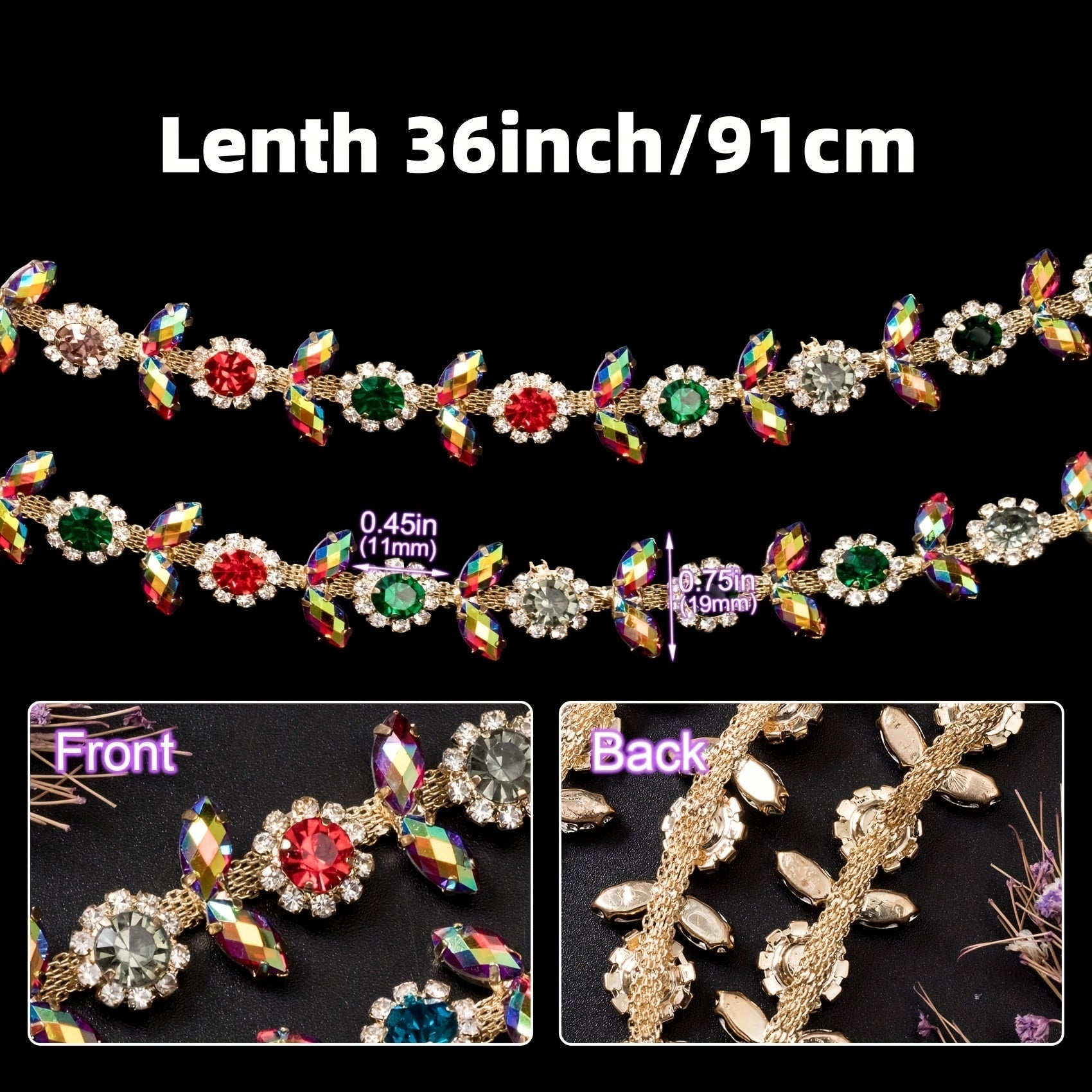 Add a touch of glamour to your costumes, dresses, and accessories with this multicolor rhinestone chain. The faux gemstones are set in a golden claw prong setting, perfect for DIY craft projects.