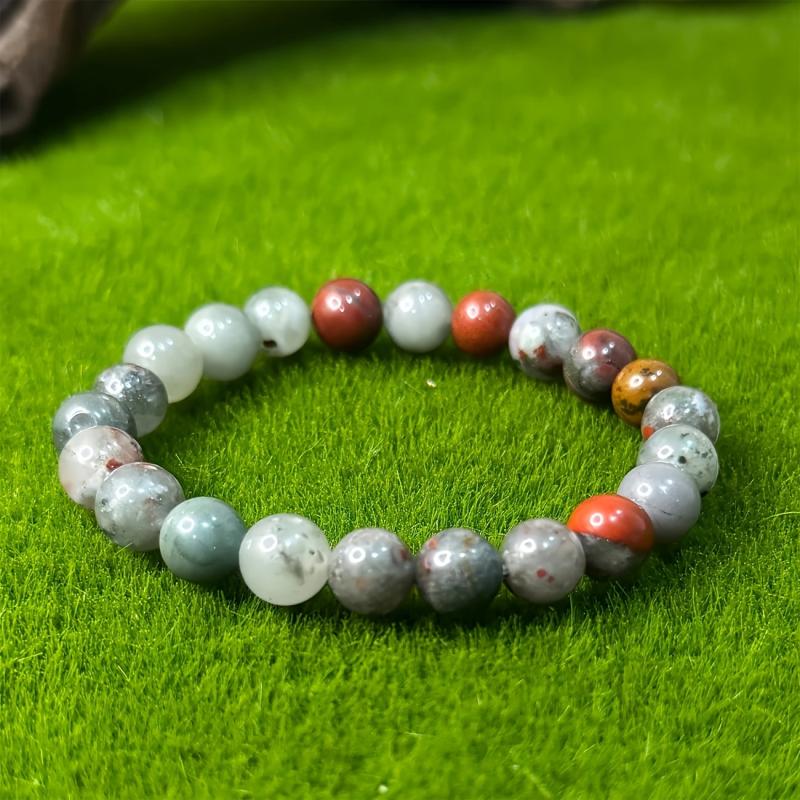 Discover the power of grounding protection with this beautiful bracelet featuring African Bloodstone beads. Use it for courage, purification, and chakra balance, while protecting against negative emotions. The perfect bohemian jewelry piece!