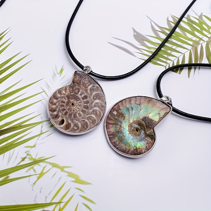 This stunning pendant necklace features a large natural Ammolite crystal wrapped in silver. A gorgeous jewelry piece for women and girls.