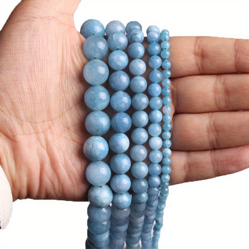 Create beautiful necklaces and bracelets with this set of 85pcs natural aquamarine round beads. Perfect for jewelry making projects.