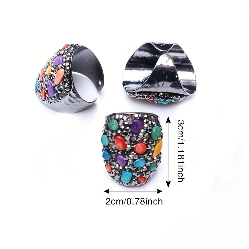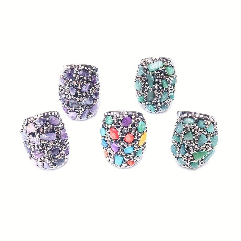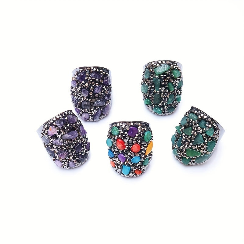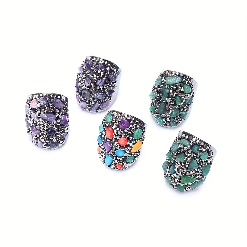 Natural Chips Stone Reiki Healing Crystal Rings For Women Gun Adjustable