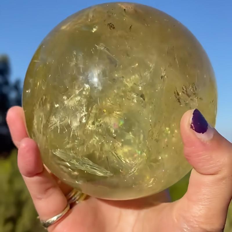 Elevate your home decor with this stunning natural citrine crystal ball. Perfect for holiday parties, birthdays, or as a thoughtful gift for parents.