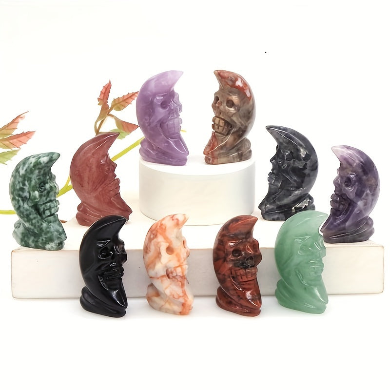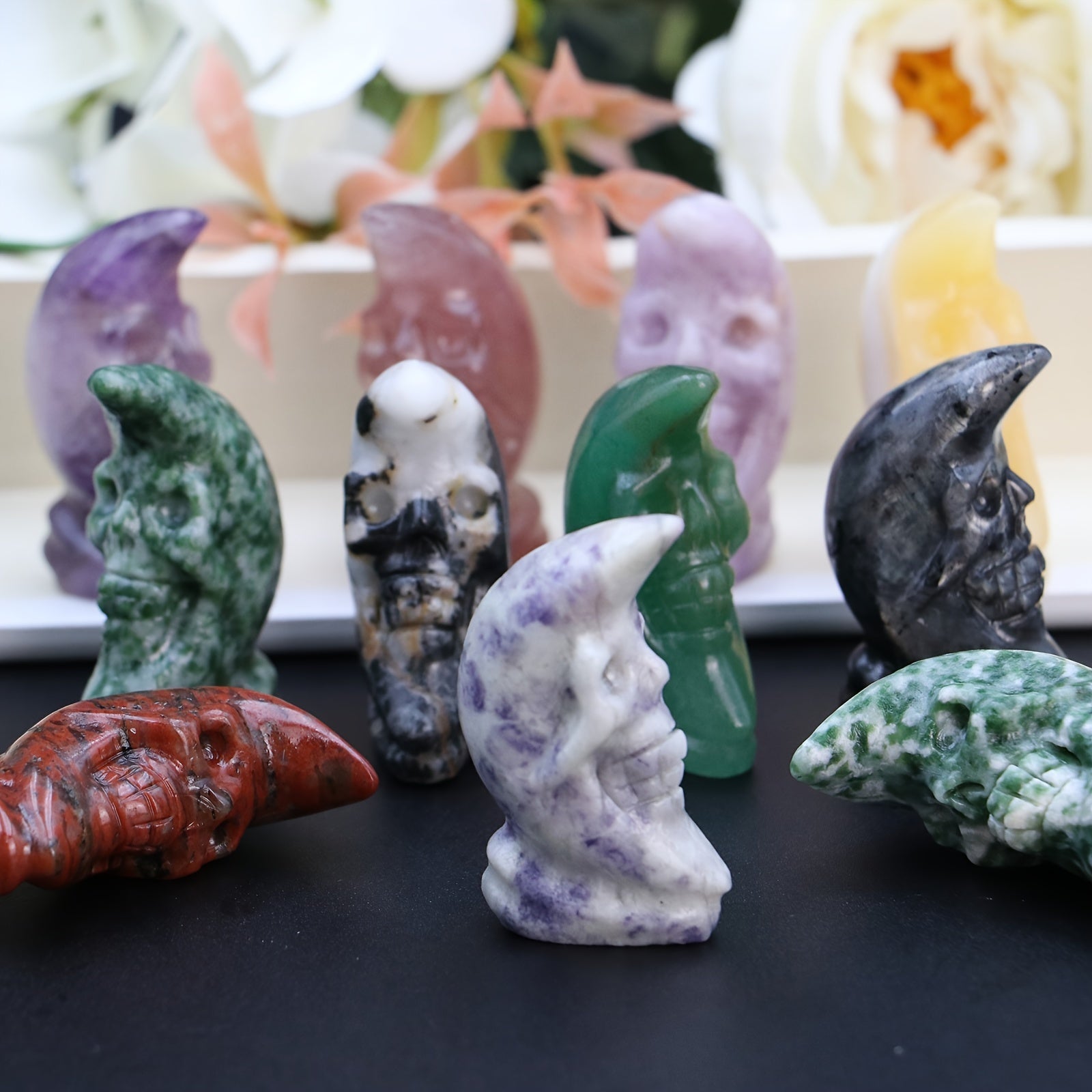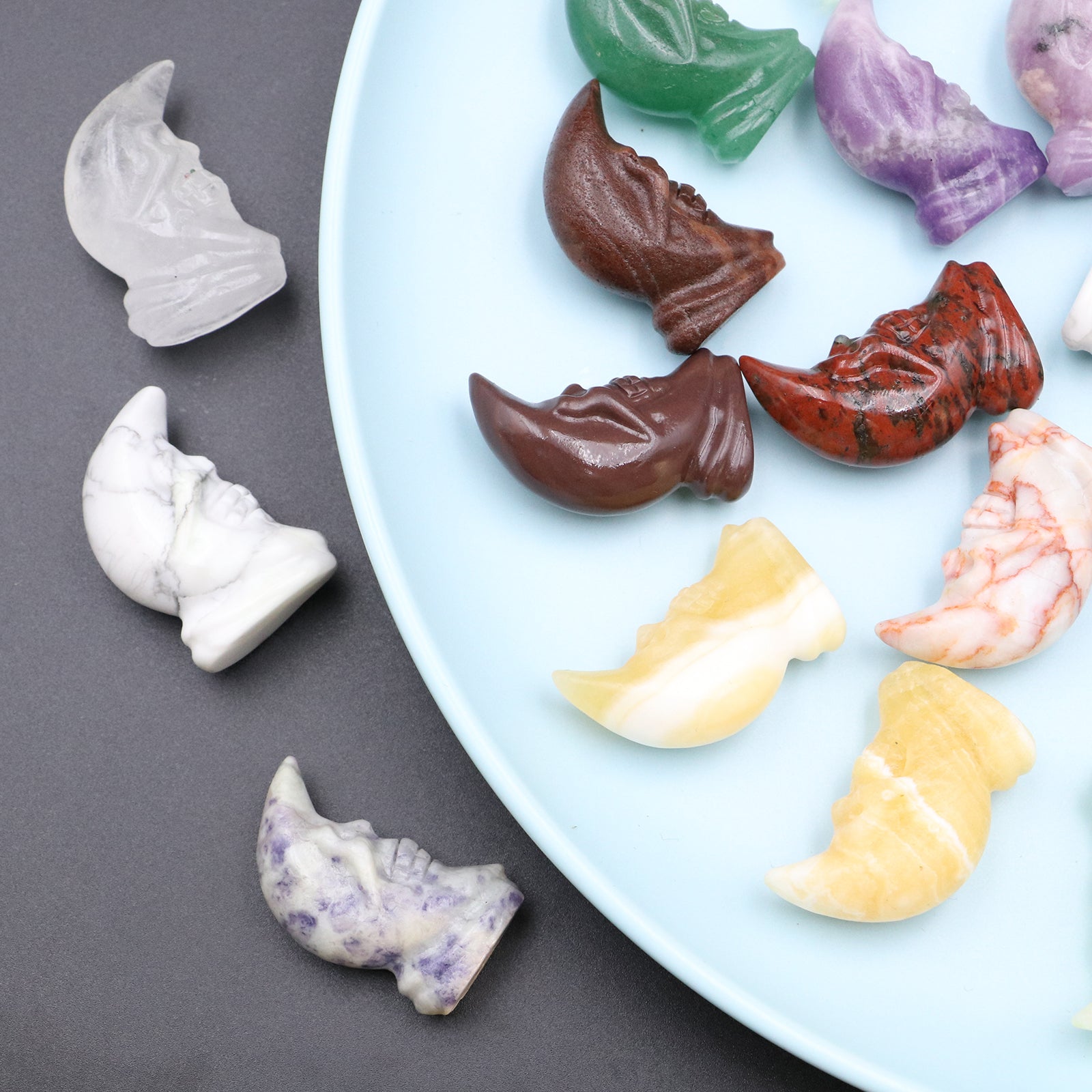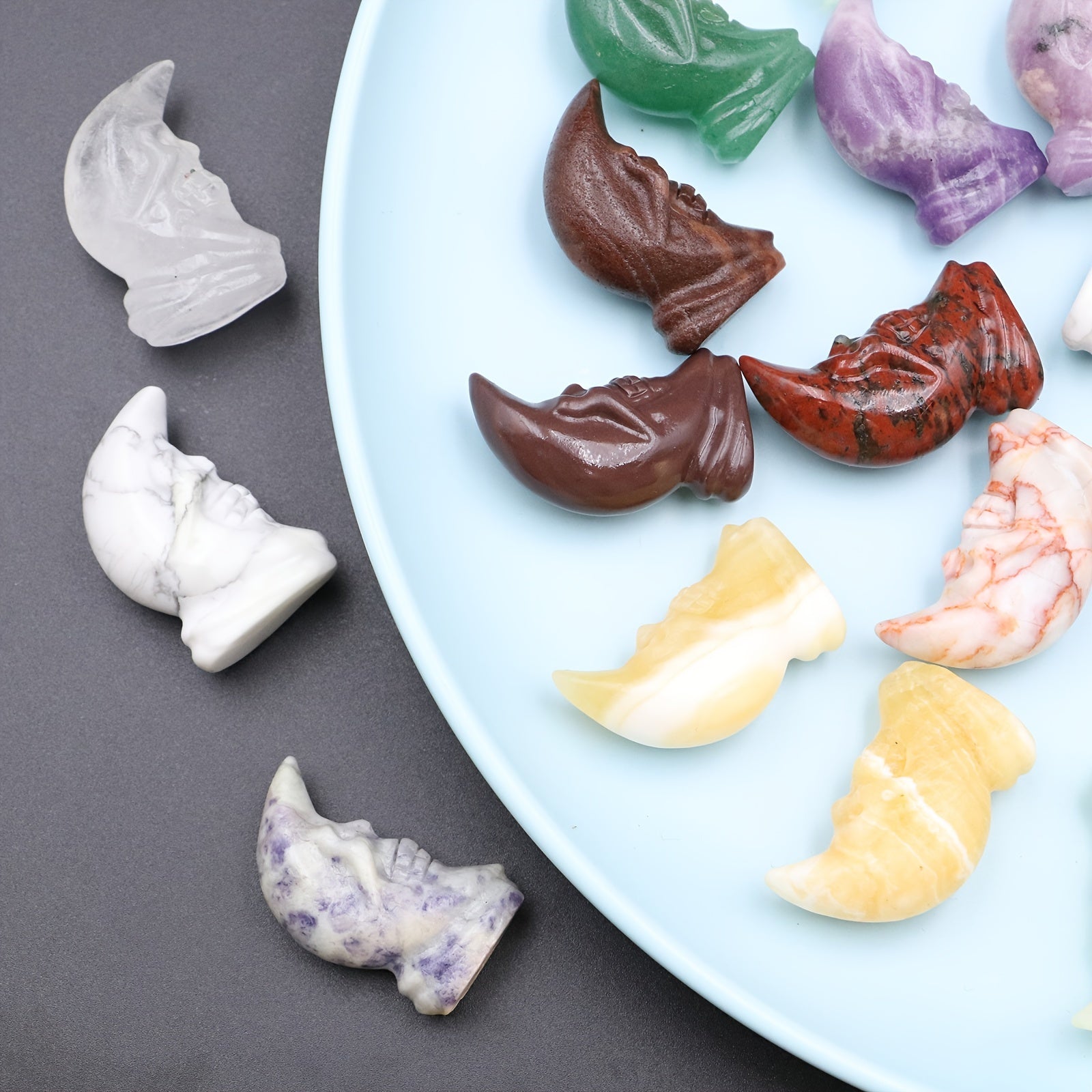 This raw agate stone features a beautiful moon face design, perfect for adding a touch of energy and style to your home or office decor.