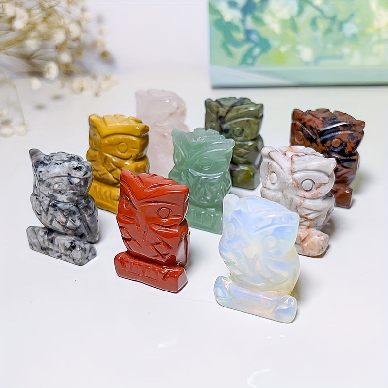 This beautiful natural crystal owl ornament is intricately carved from jade, making it a perfect Halloween gift or home decoration. The owl symbolizes wisdom and protection, adding a touch of mystical charm to any space.