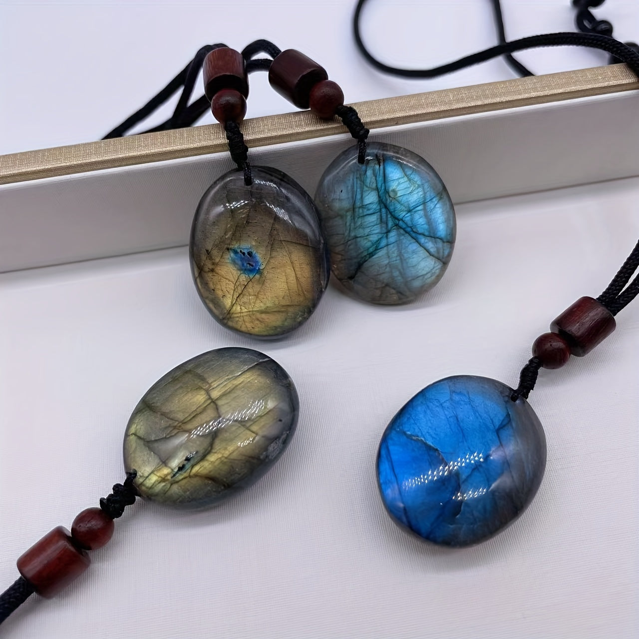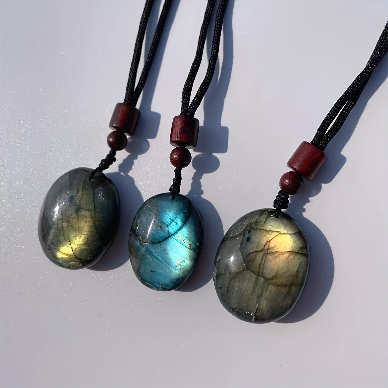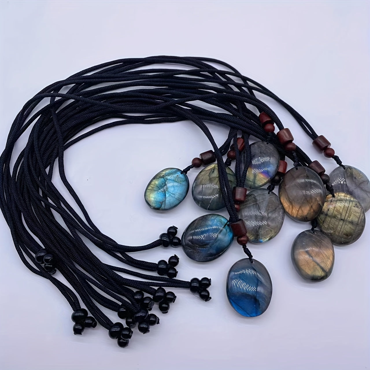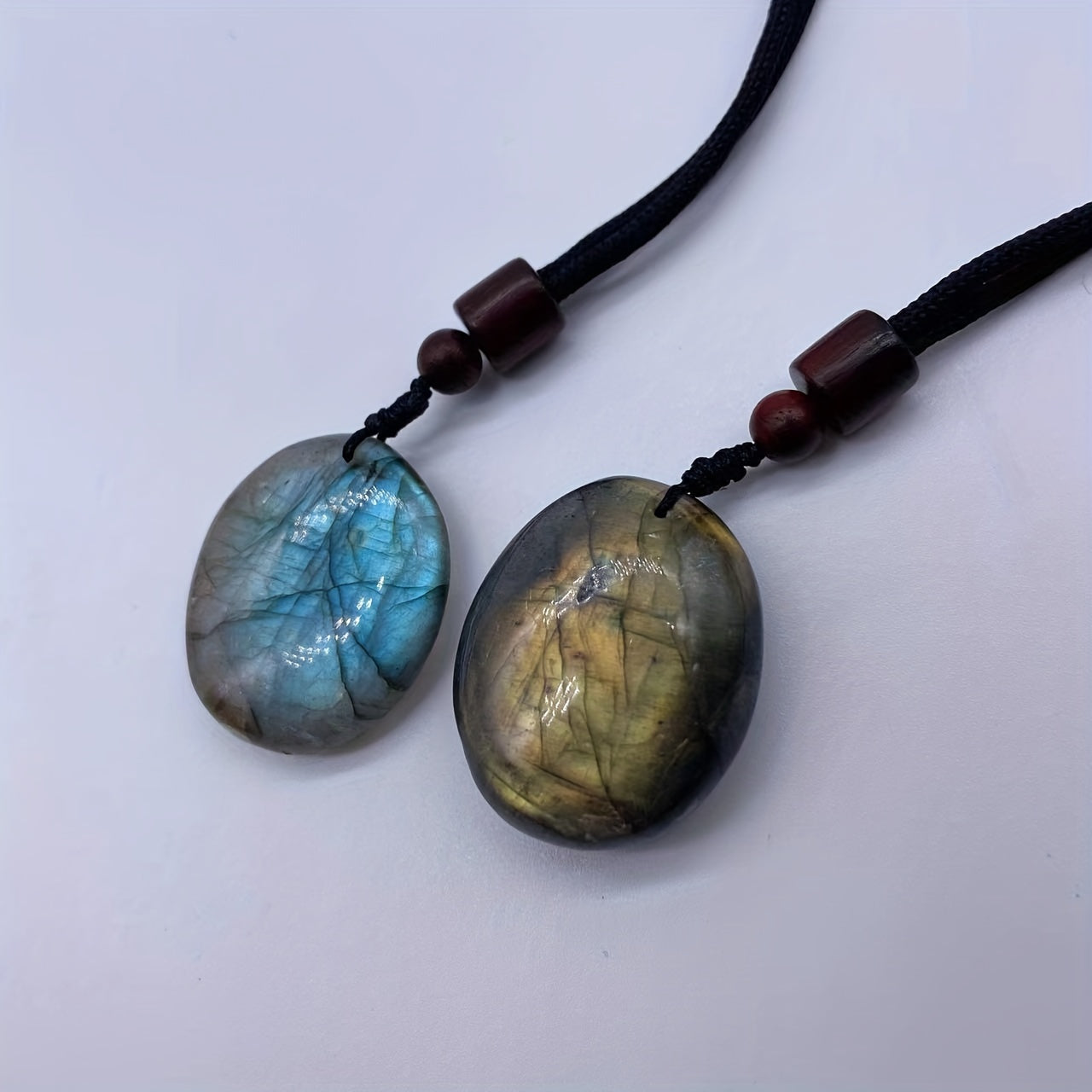 Natural Crystal Labradorite Rough Moonstone DIY Necklace Sweater Chain Pendant
