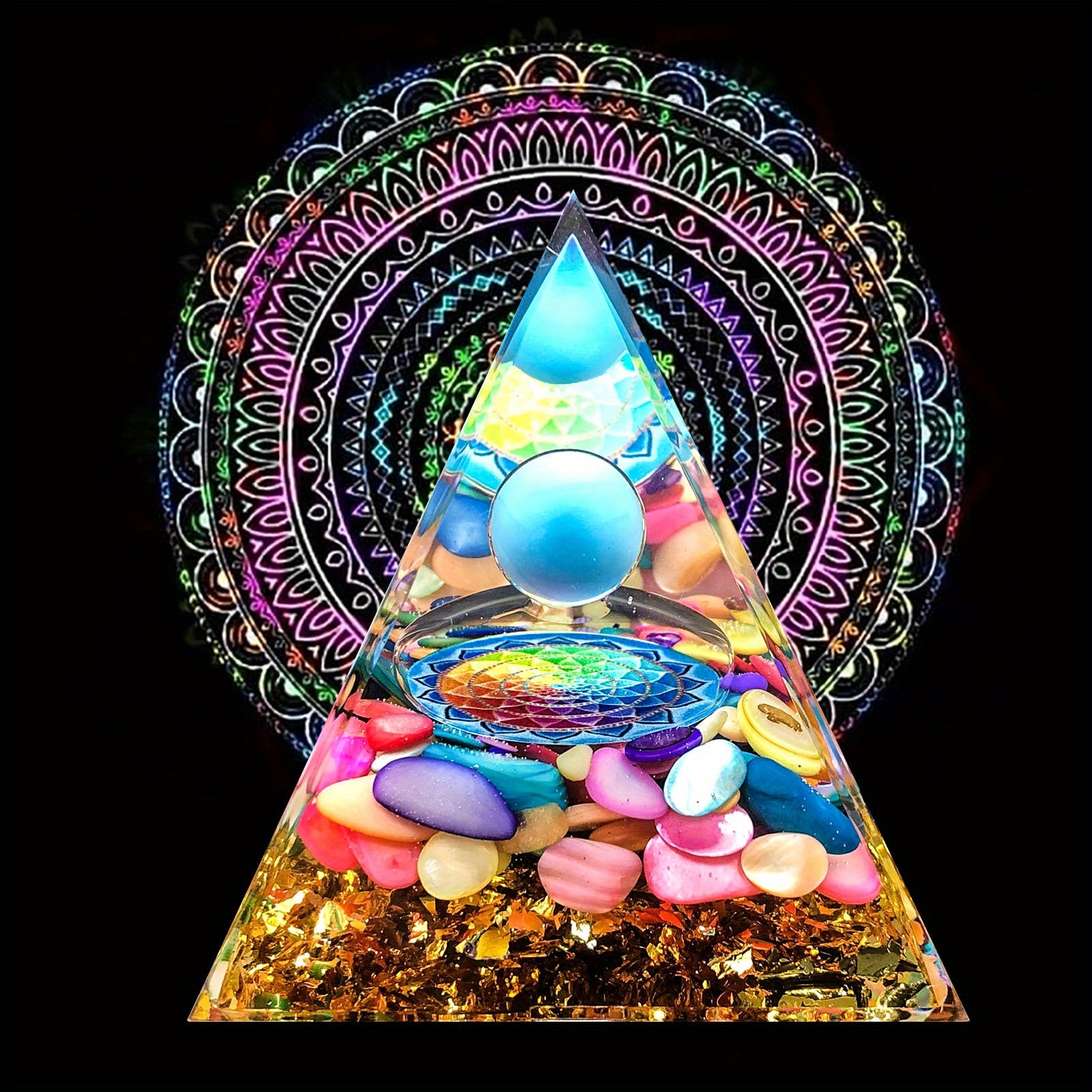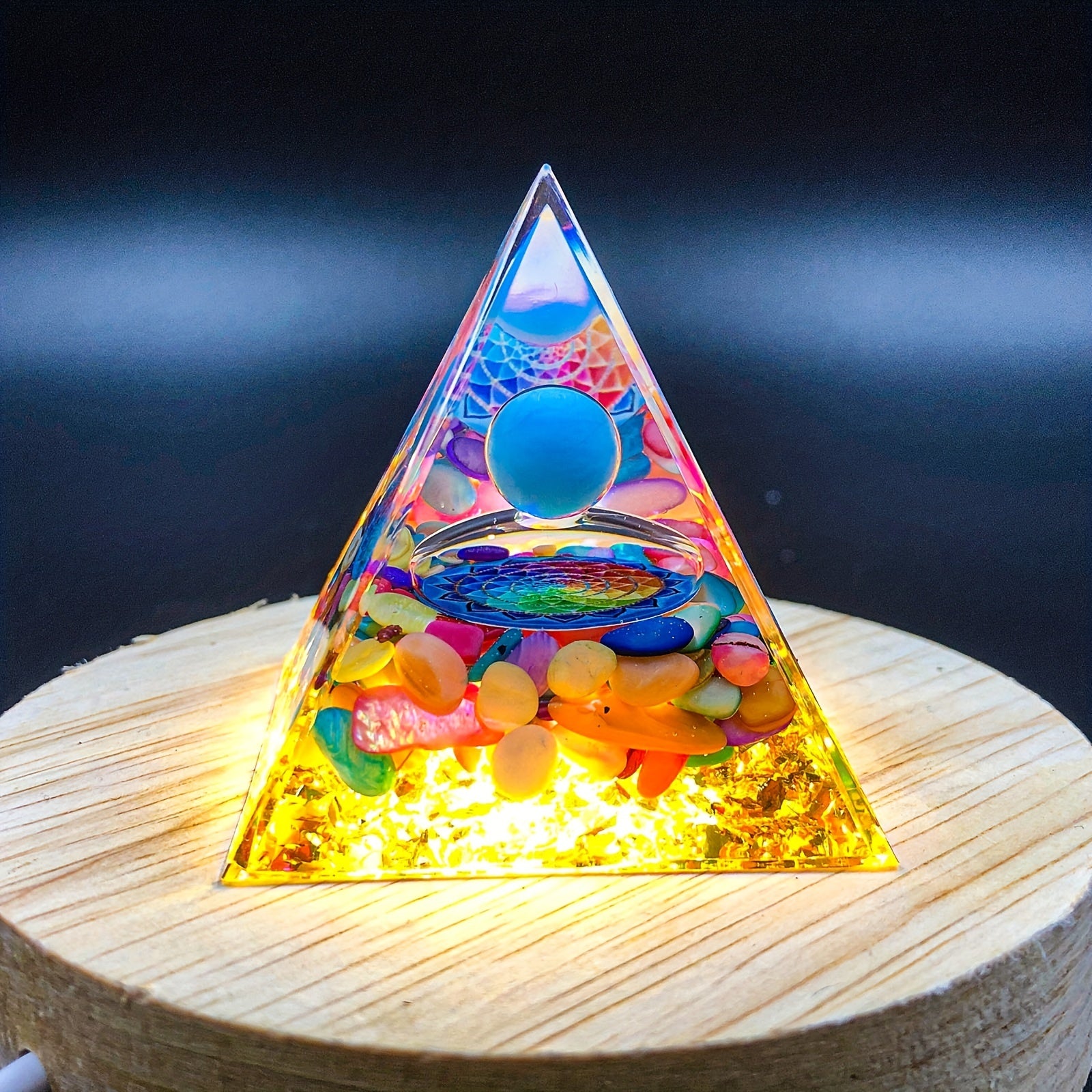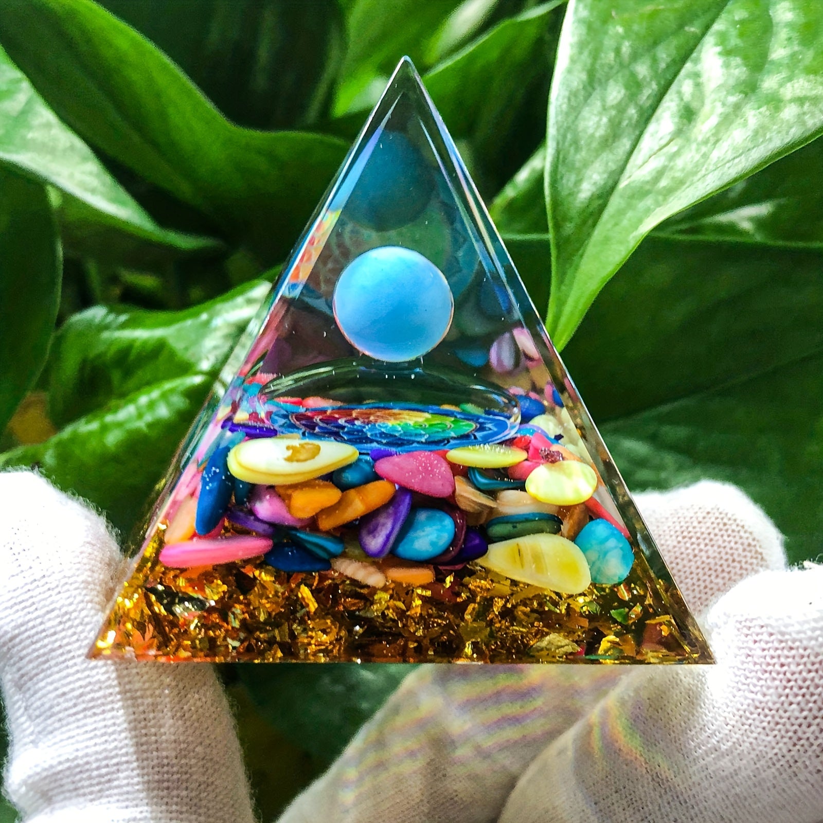 Enhance your well-being with this orgone pyramid crafted from natural crystals. Ideal for stress relief, healing, meditation, and attracting wealth.
