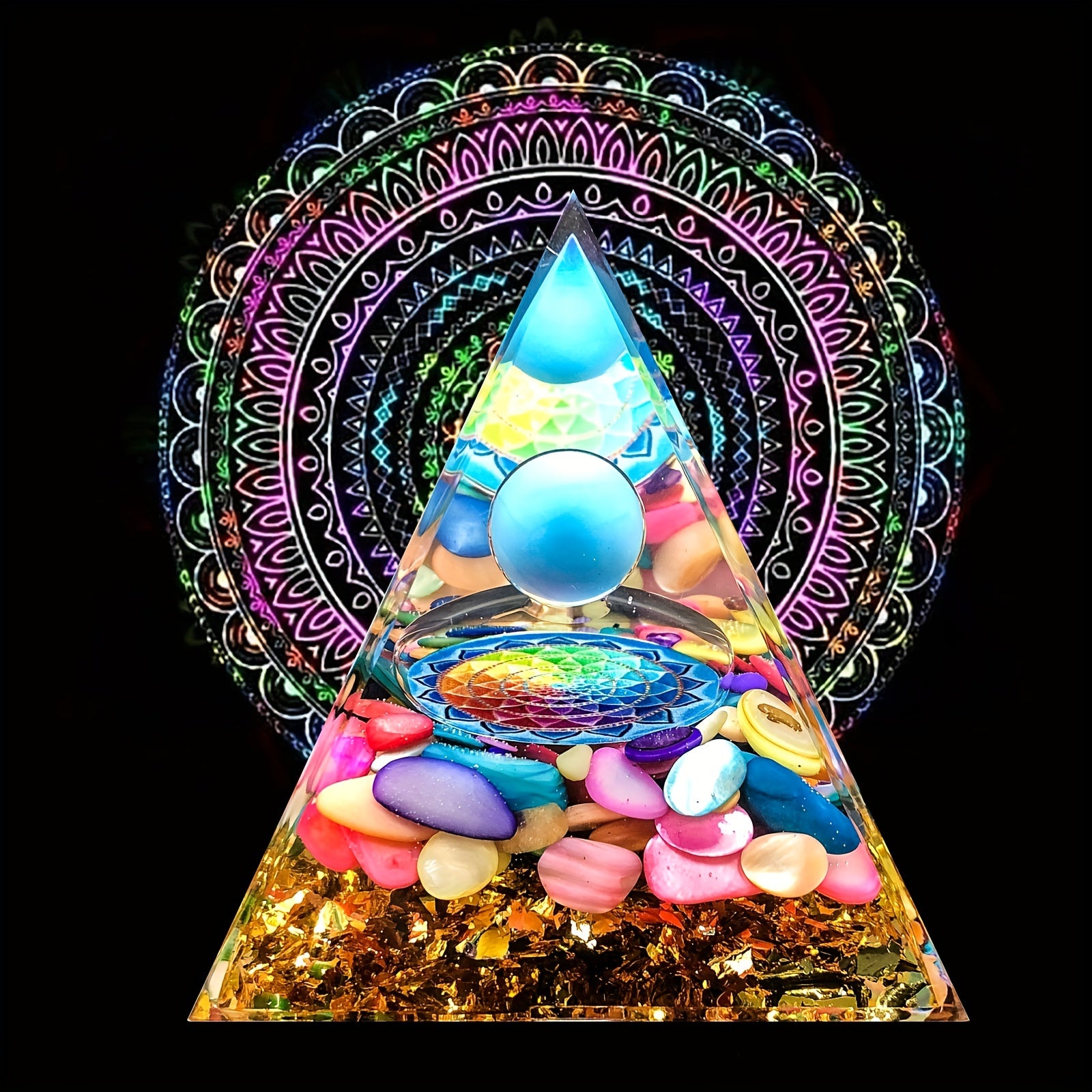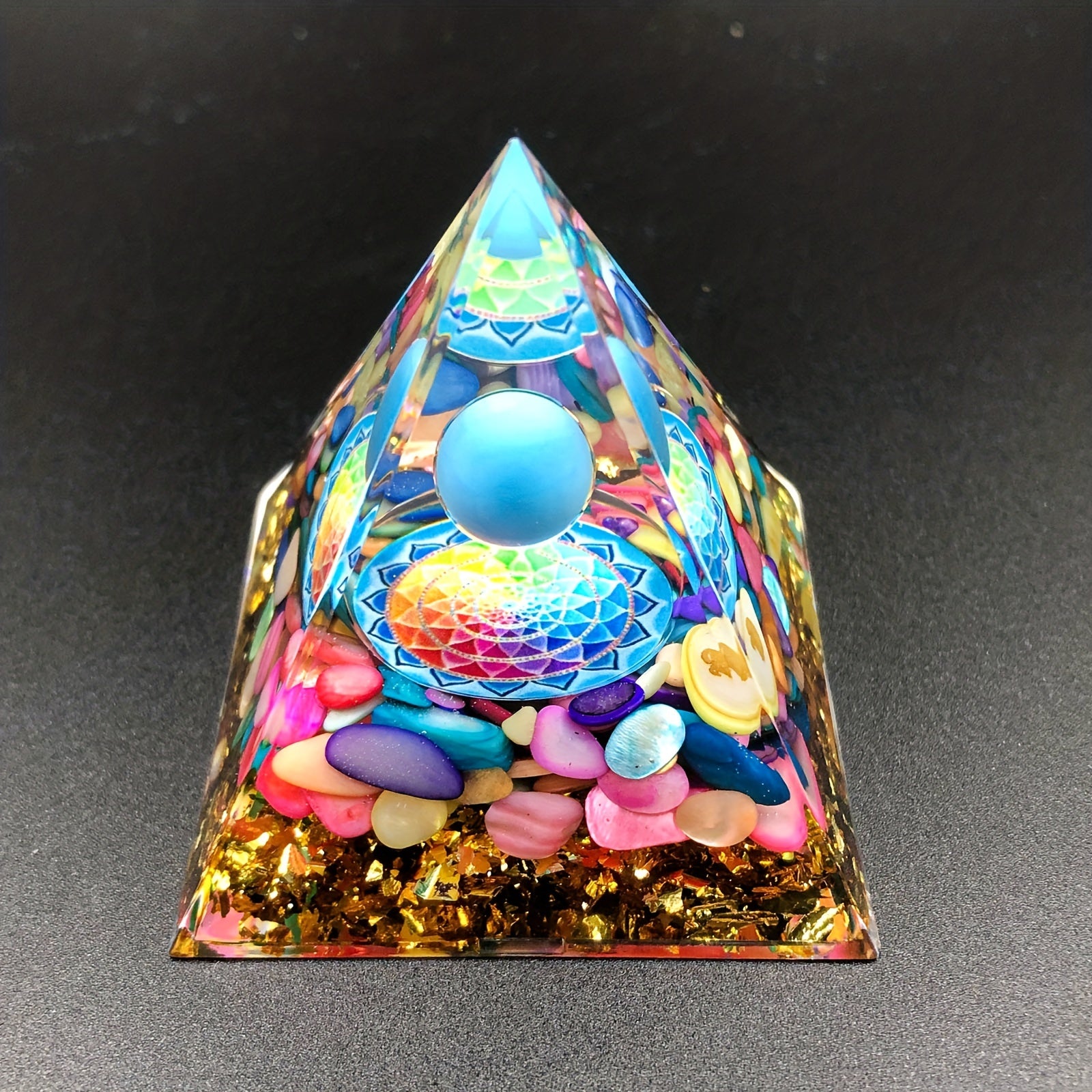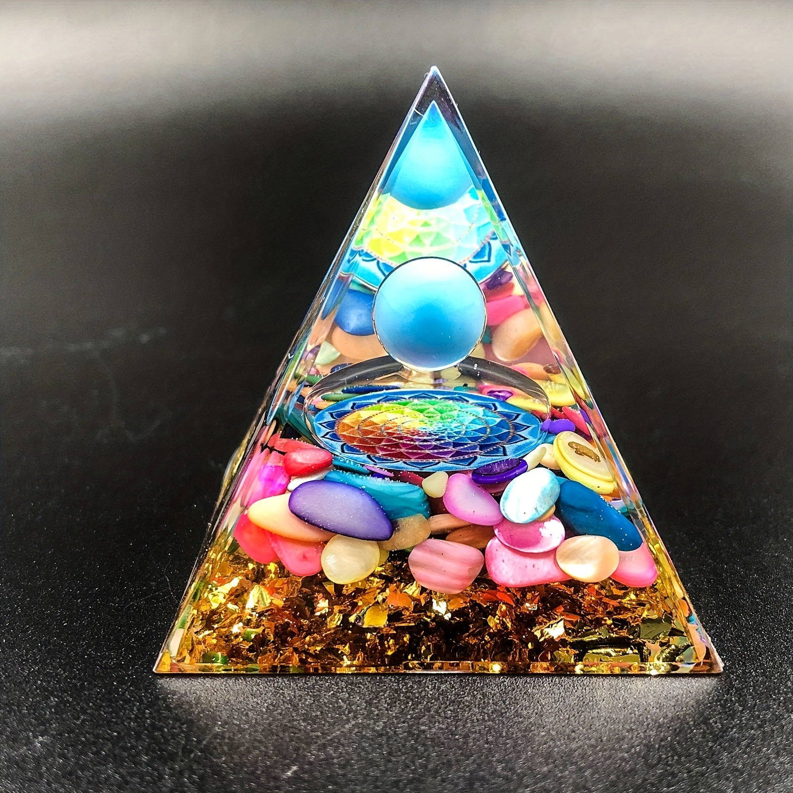 Enhance your well-being with this orgone pyramid crafted from natural crystals. Ideal for stress relief, healing, meditation, and attracting wealth.