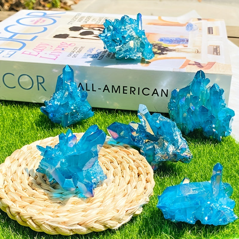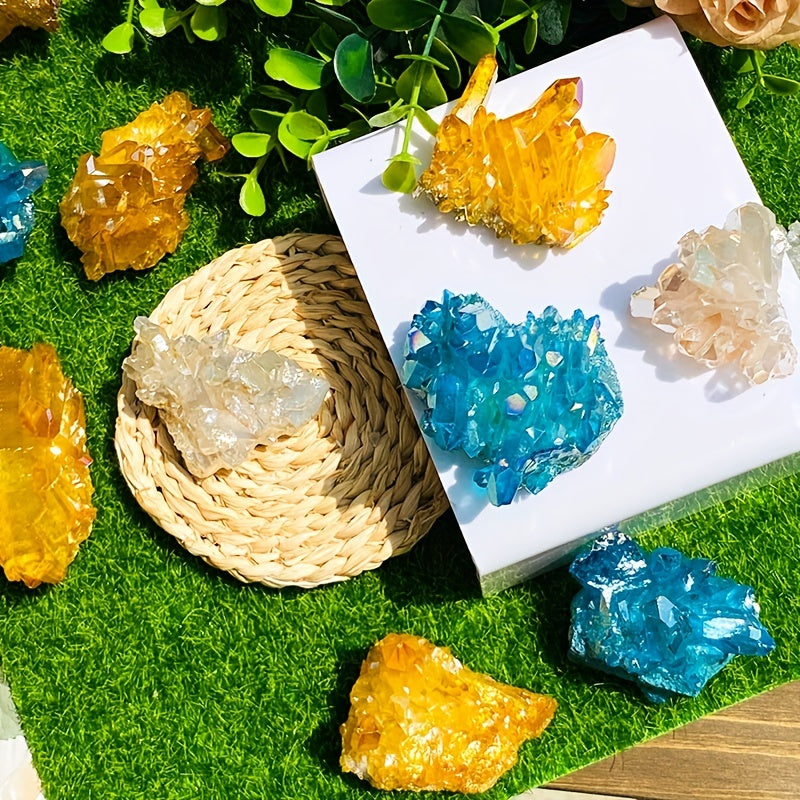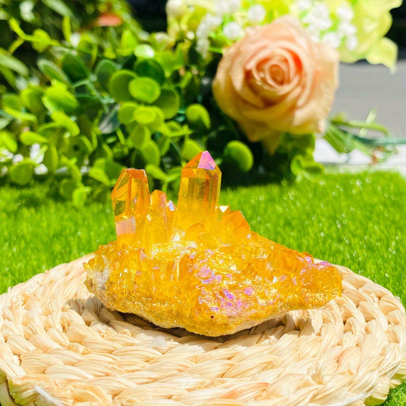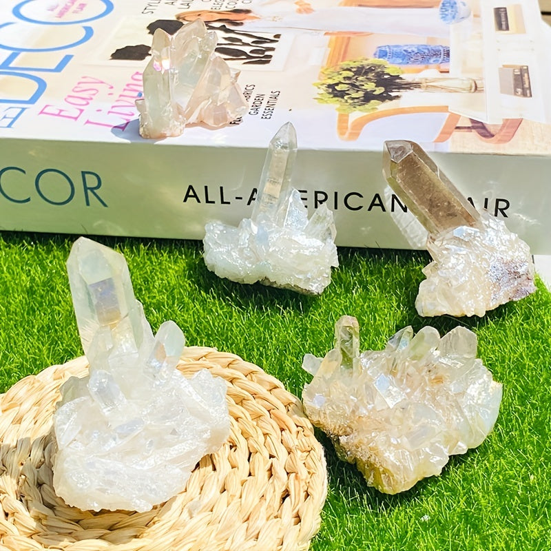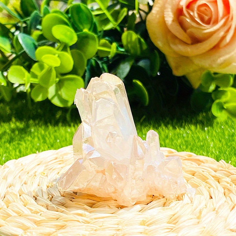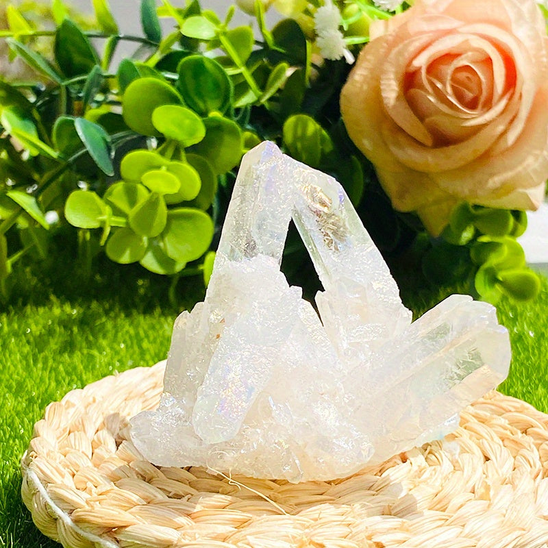 This stunning Natural Crystal Quartz Cluster is plated for added beauty and comes with healing energy properties. Perfect for table decoration and creating a calming ambiance.