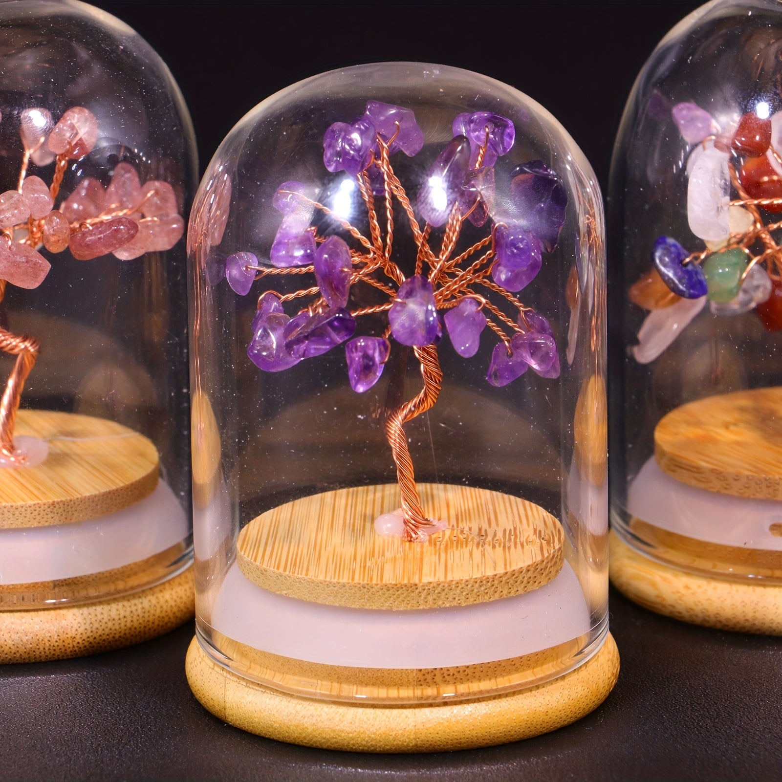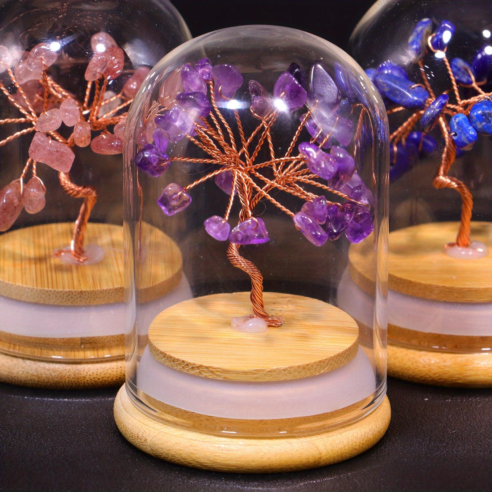 Invite positive energy into your space with this beautiful natural crystal tree on a wood base. The tree features a mix of amethyst and pink crystals, perfect for enhancing your chakra balance and promoting well-being.