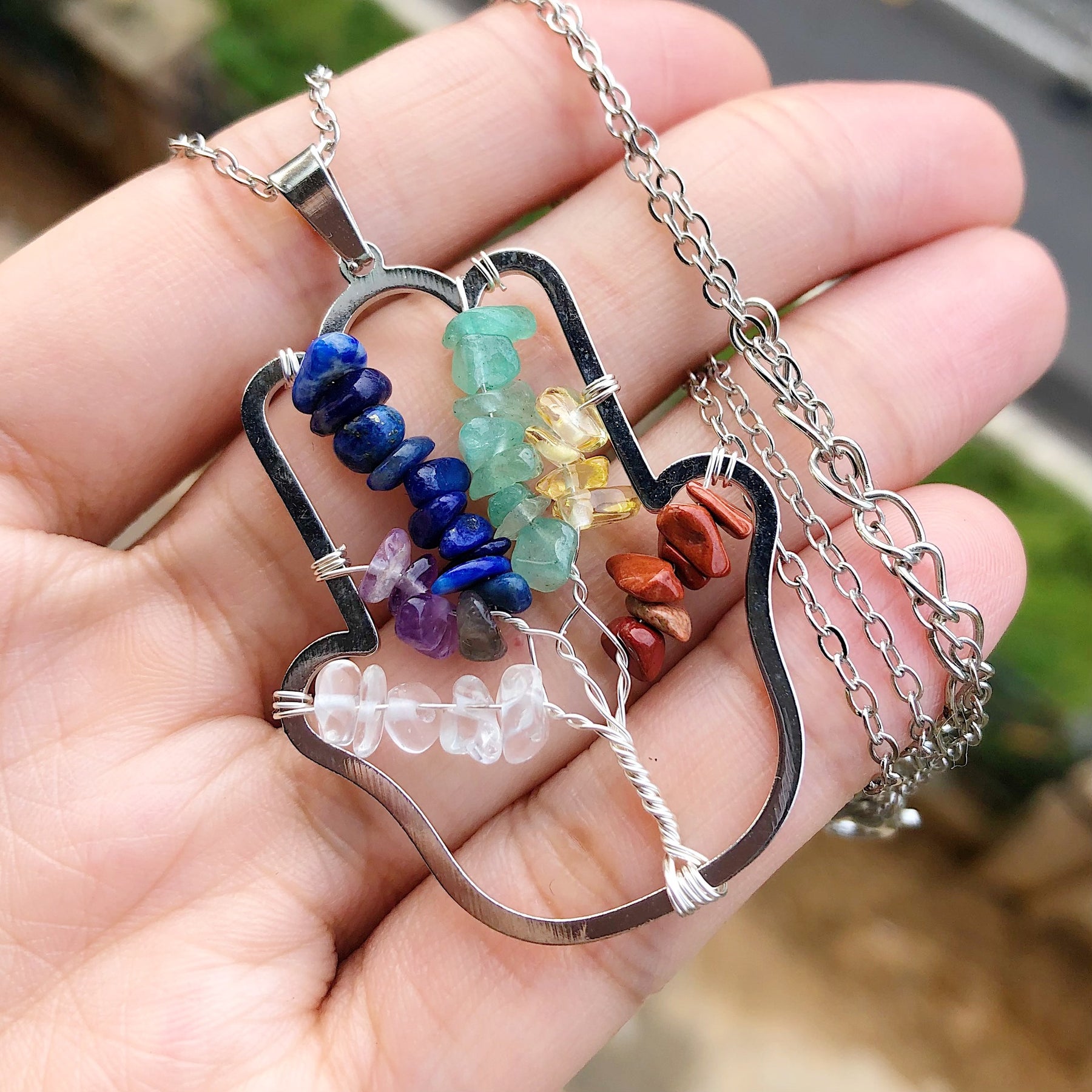 This pendant features a beautiful tree of life design crafted from natural gemstone, making it a powerful healing and Reiki amulet.