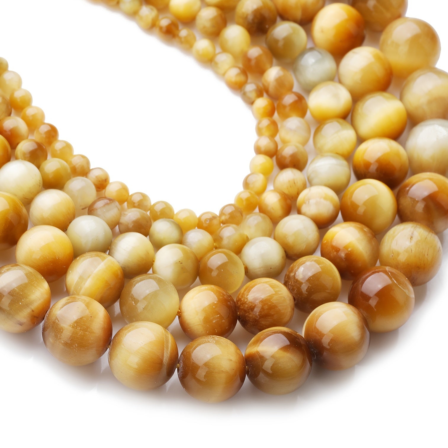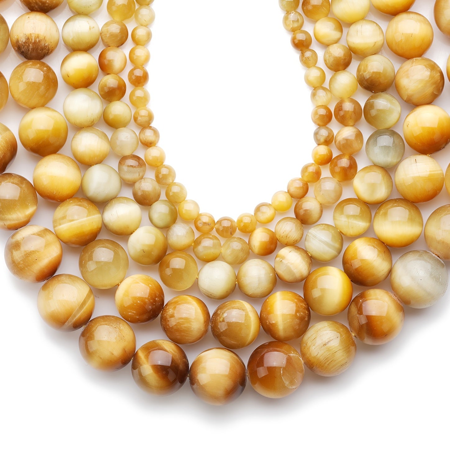 Enhance your jewelry creations with these natural Golden Tiger Eyes gemstone loose beads perfect for making necklaces, earrings, and bracelets.