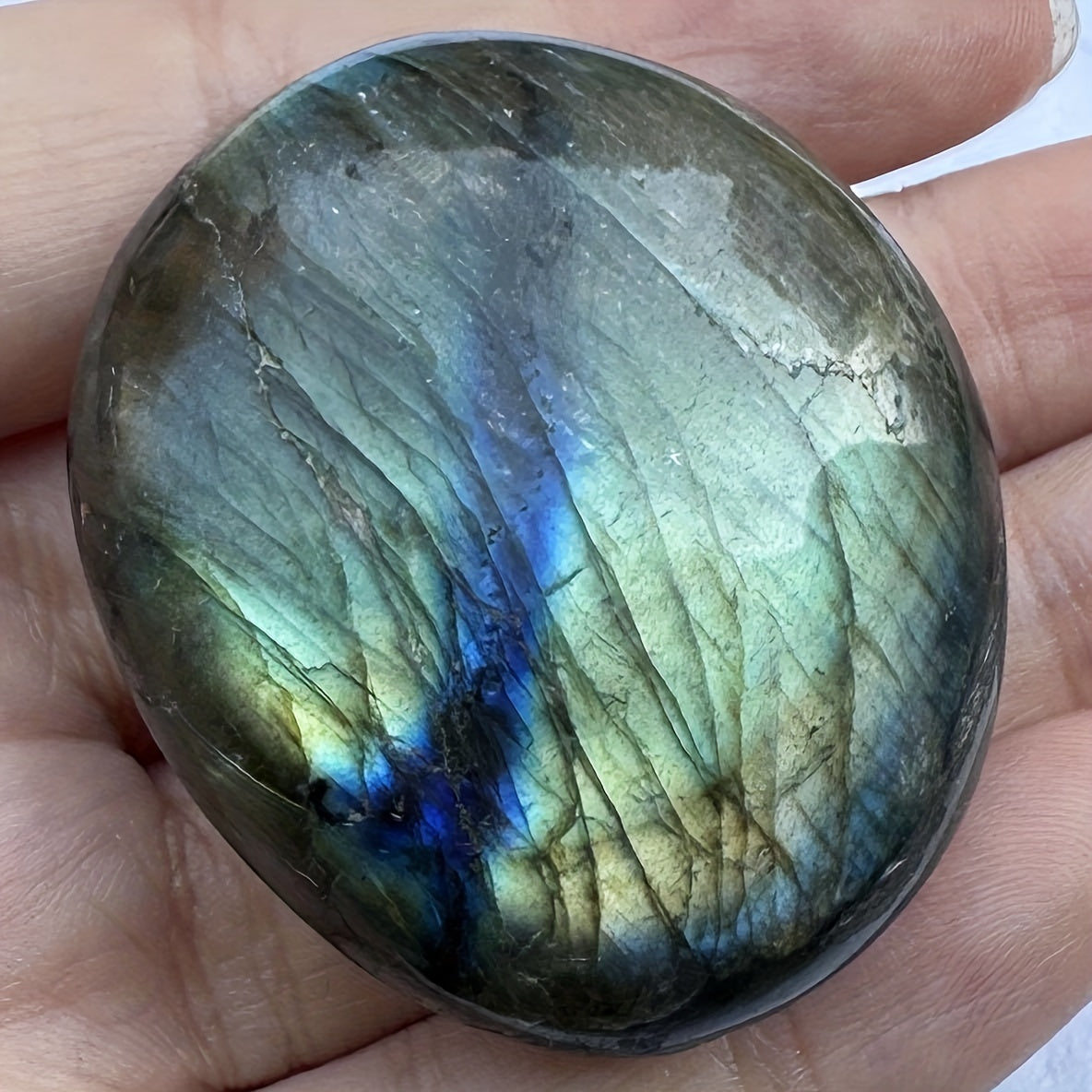 This Labradorite palm stone is perfect for meditation and chakra balancing. Keep it in your pocket for on-the-go stress relief.