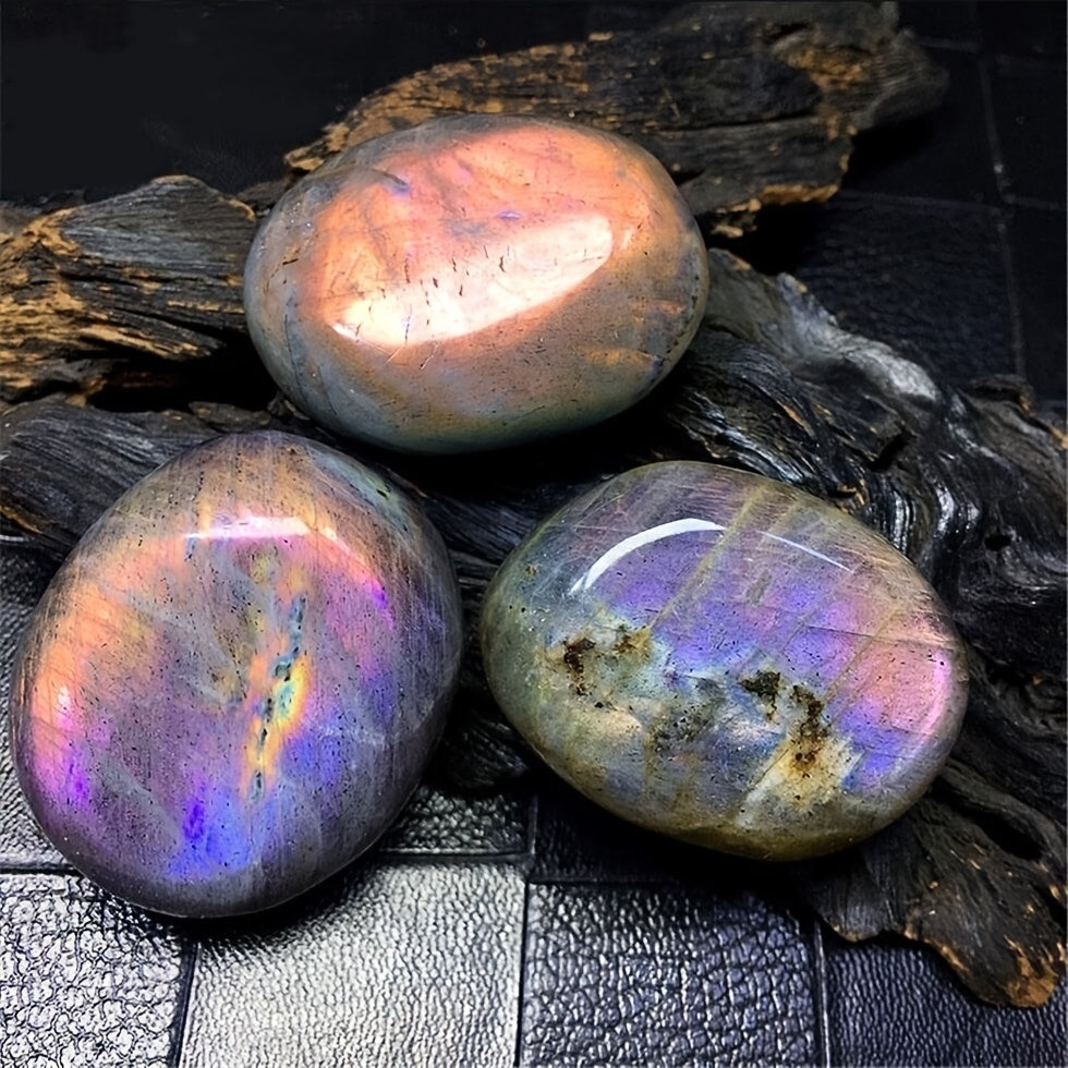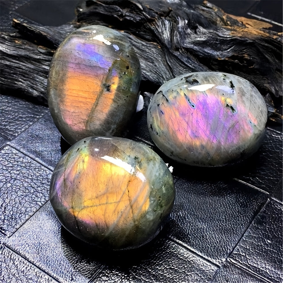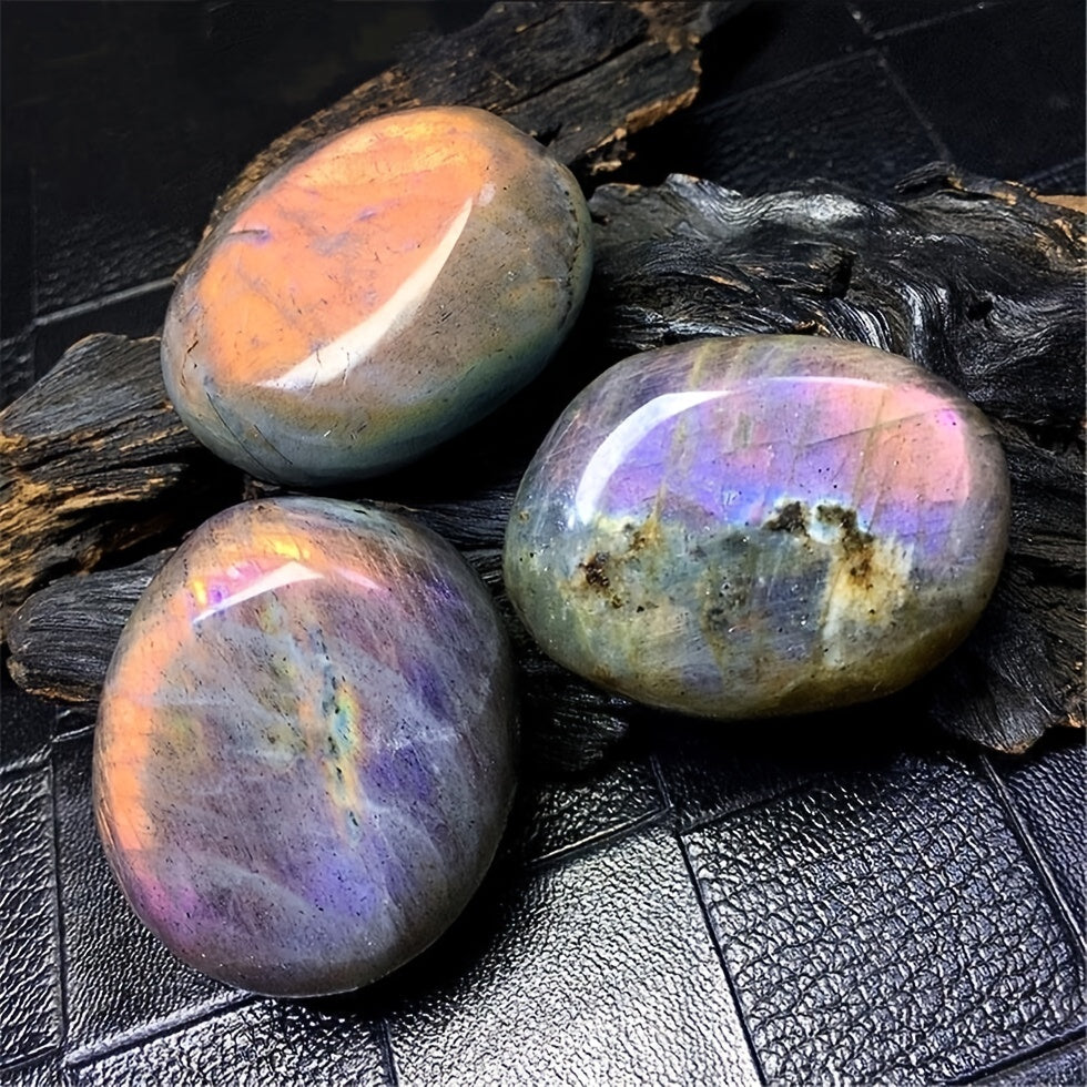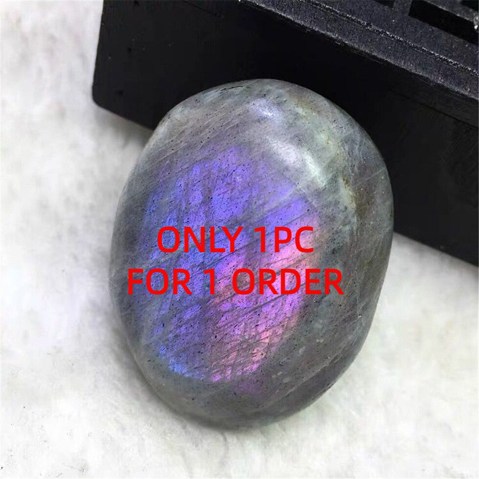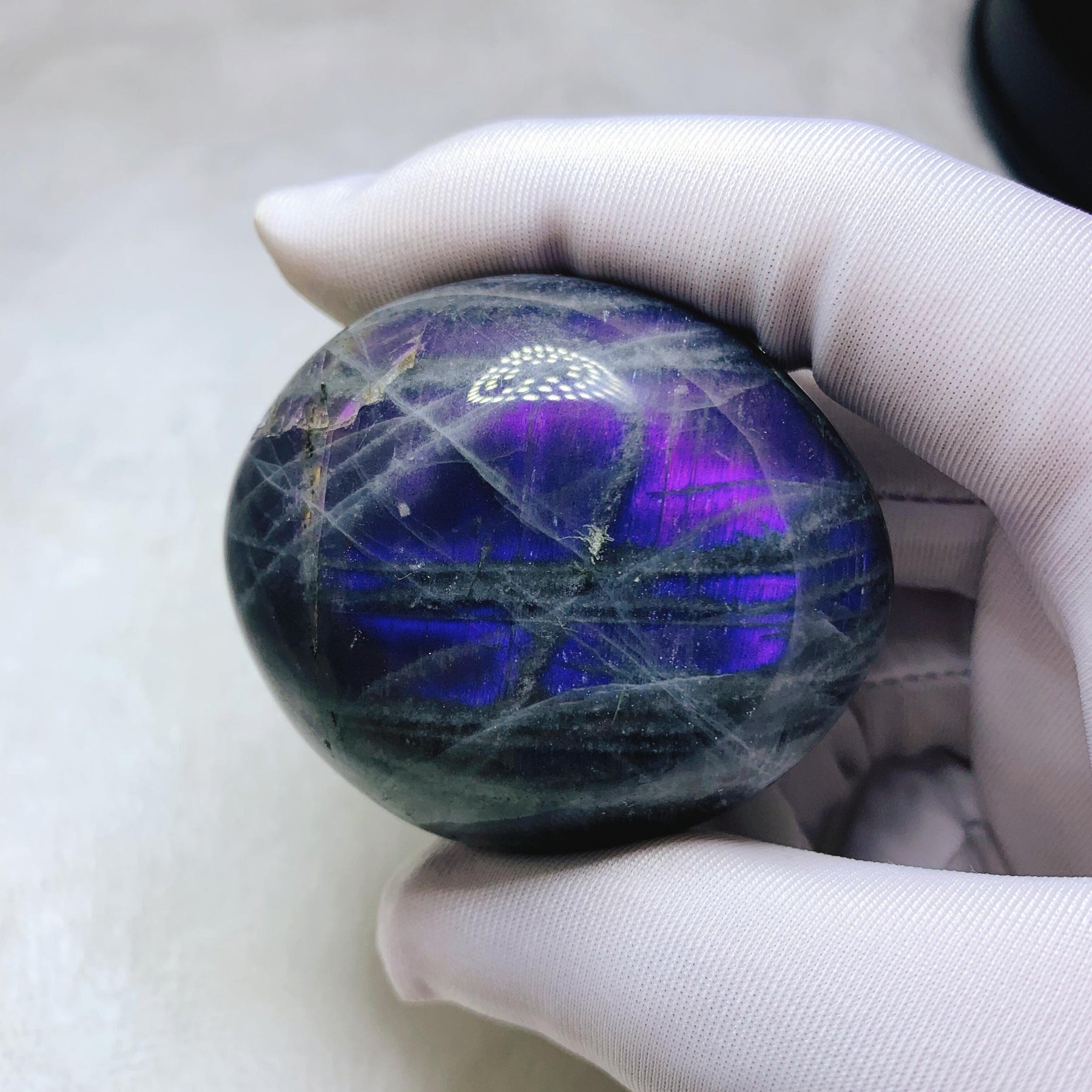 This natural purple labradorite palm stone is perfect for home ornamentation and healing crystal practices.