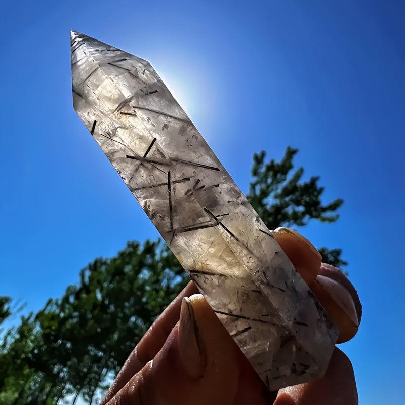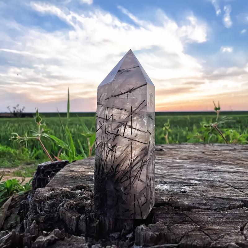 Add a touch of bohemian style to your space with this beautiful natural quartz crystal column. Perfect for home or office decor, it provides spiritual protection and makes a unique gift.