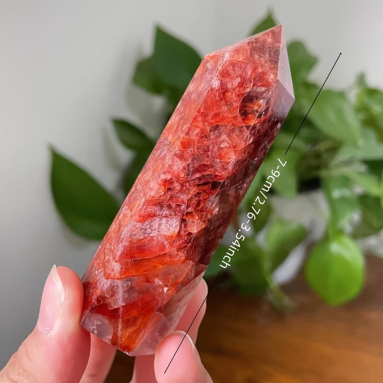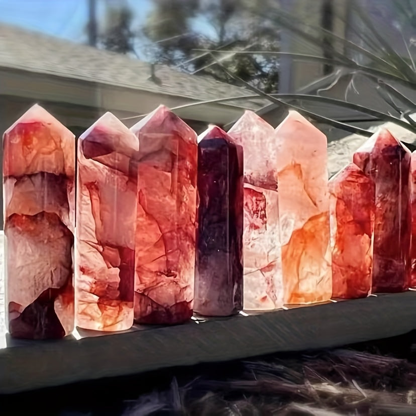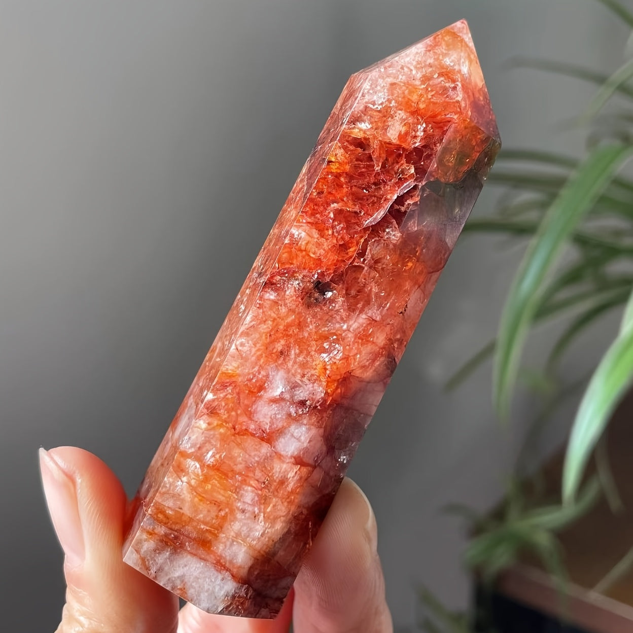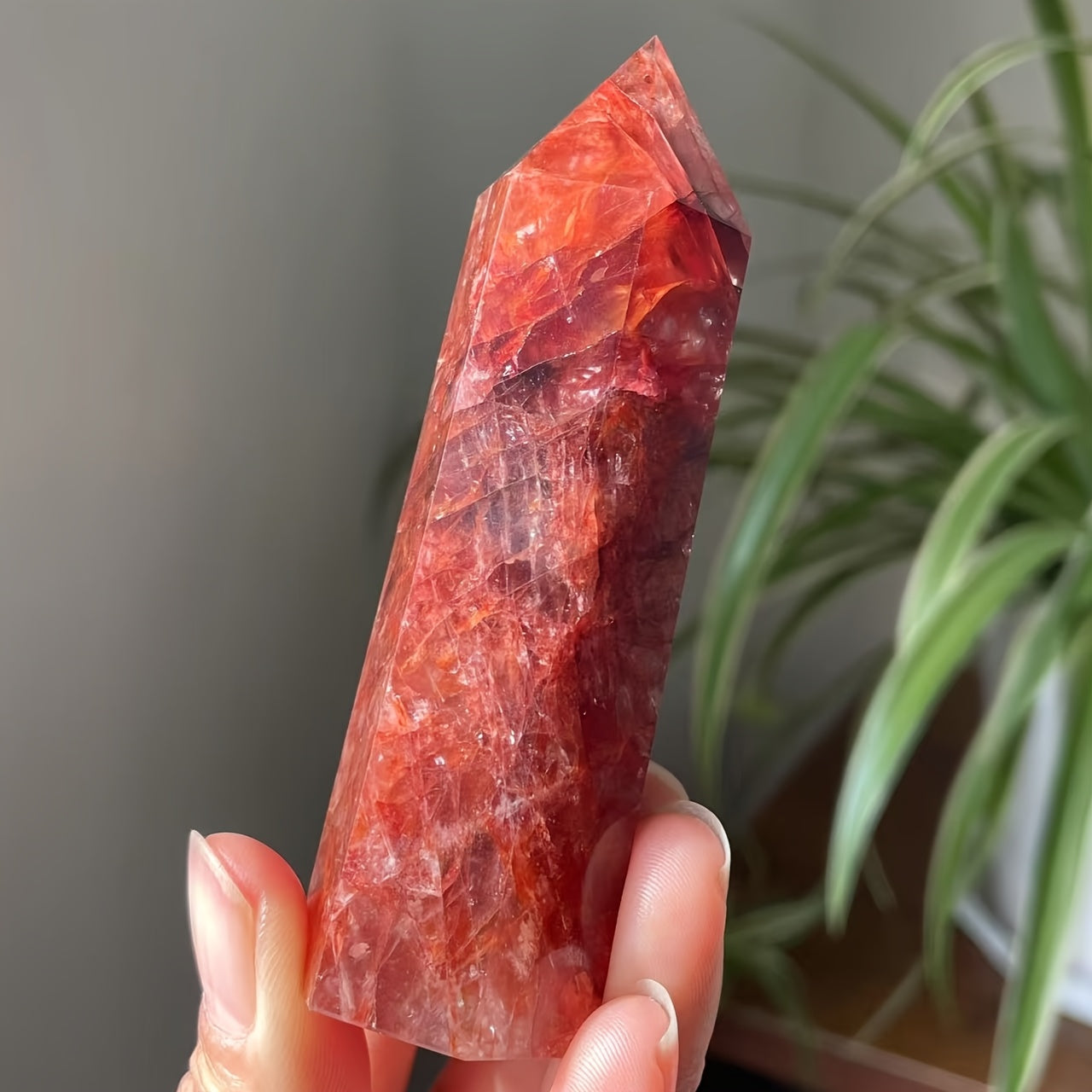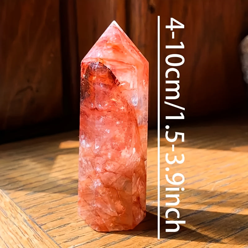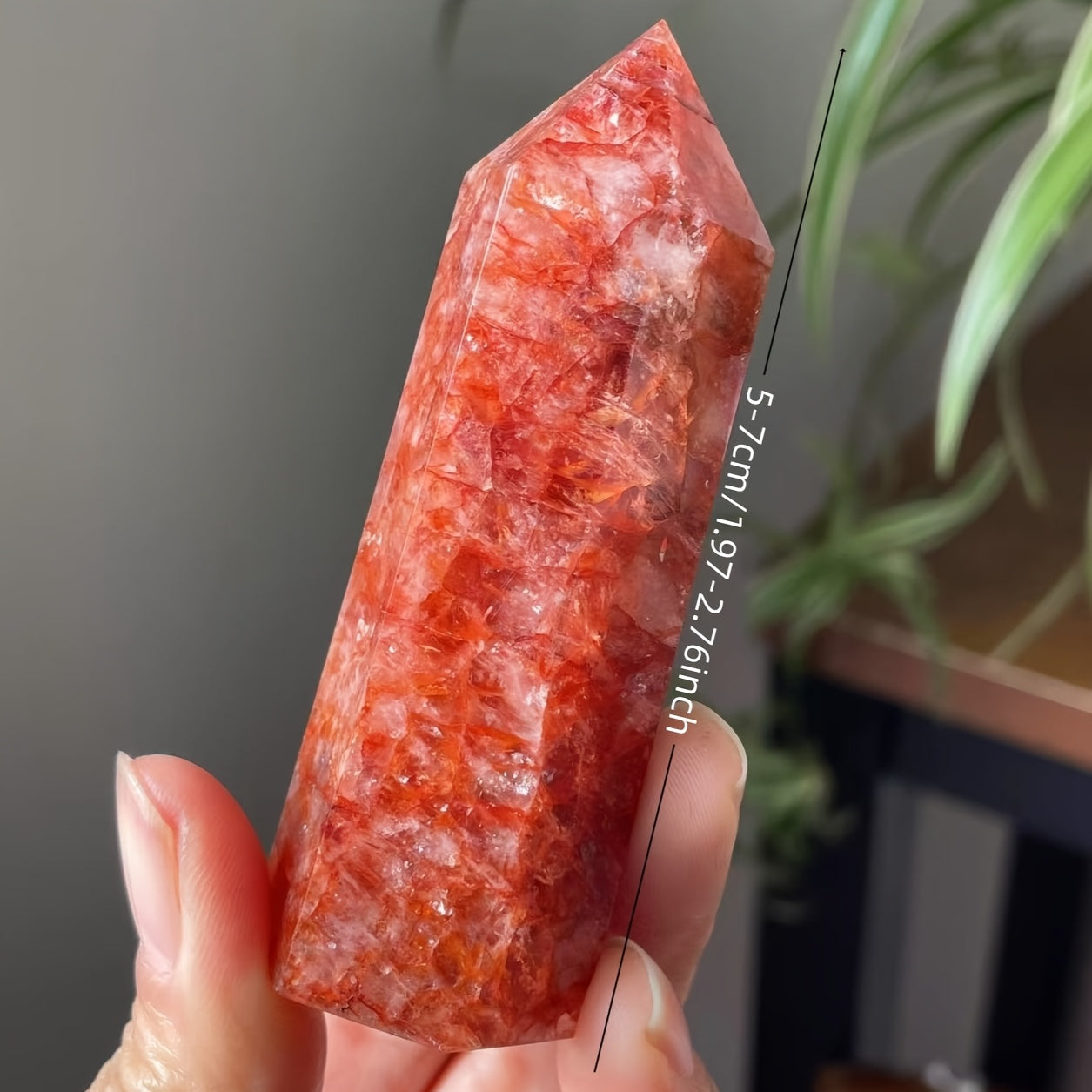Enhance your home or office decor with this beautiful Red Agate Flower Crystal Tower. It features a hexagonal column shape and a red flame obelisk design.
