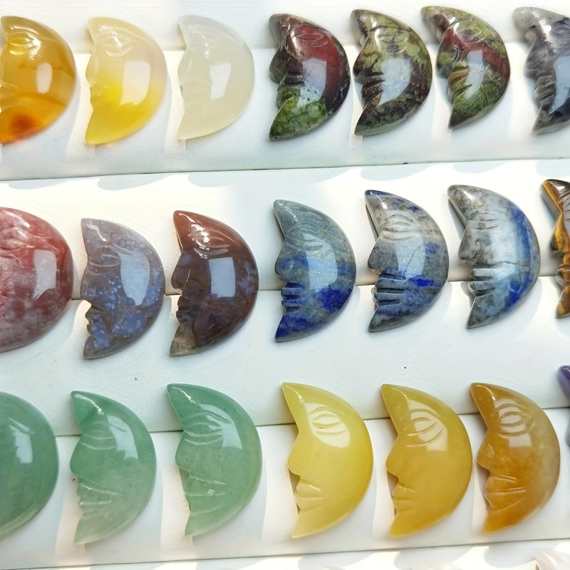 Natural Rose Quartz Moon Face Gemstone Energy Healing Stone