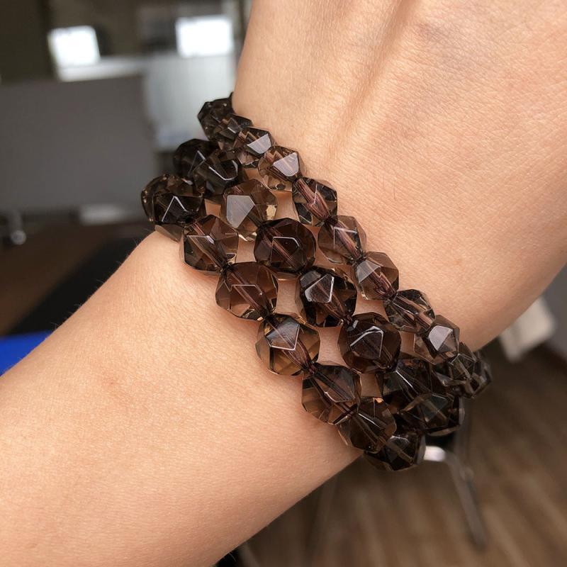 Natural Smoky Crystal Quartz Beads - Polygonal Transparent - Daily Wear Bracelet
