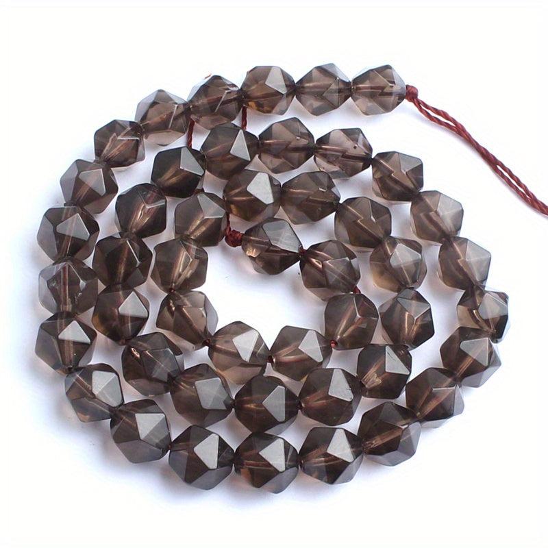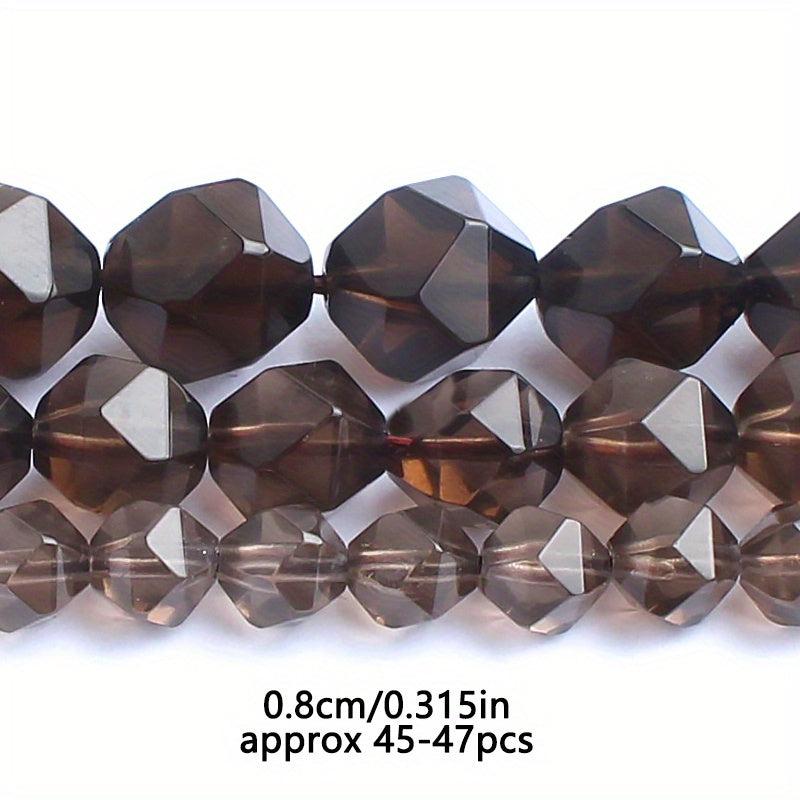 These natural 6-8-10mm faceted smoky crystal quartz beads are perfect for daily wear. Their charming polygonal shape adds a touch of elegance to any outfit. Made from high-quality natural stone, they are ideal for creating unique charm jewelry pieces.