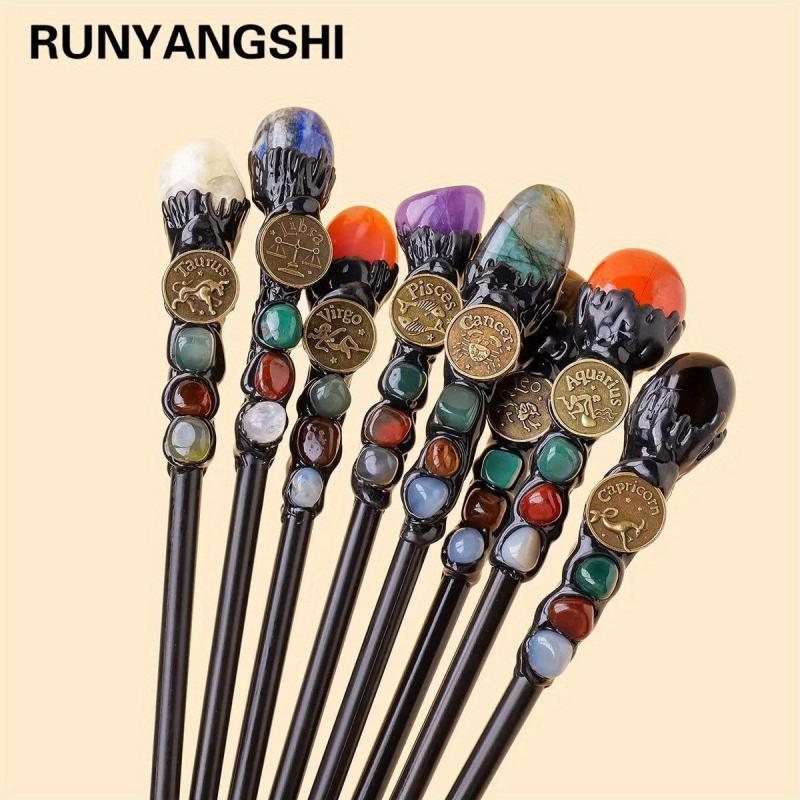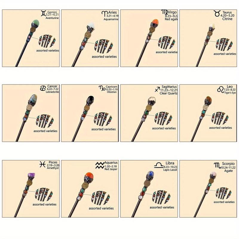 Natural Stones Zodiac Signs Magic Scepter Fairy Wand Props