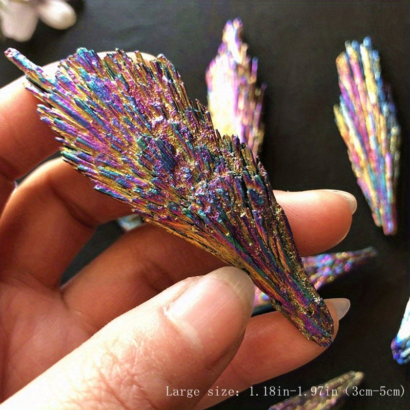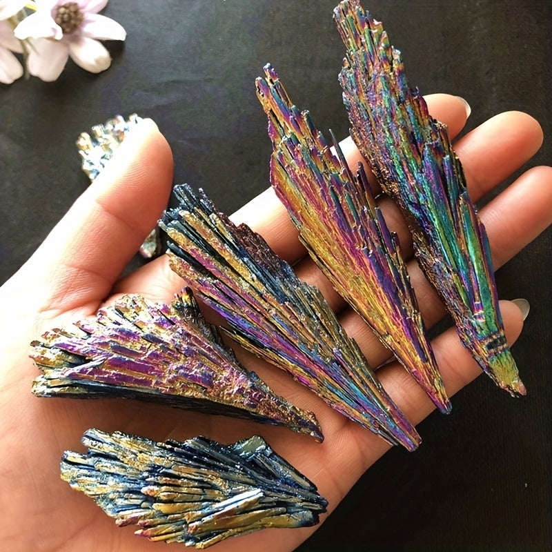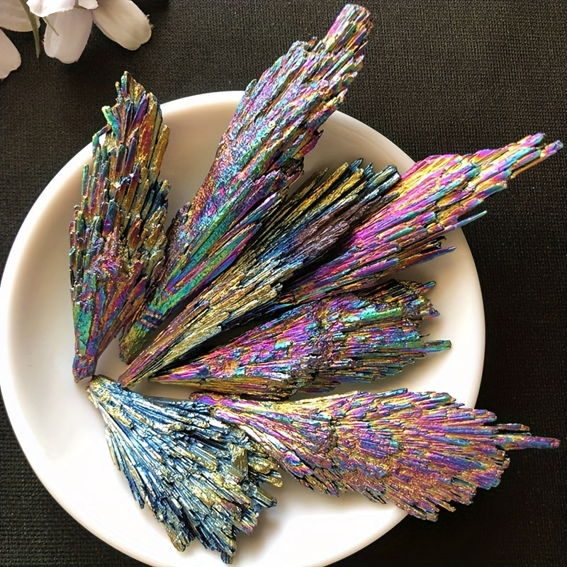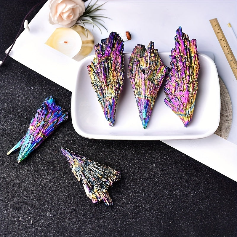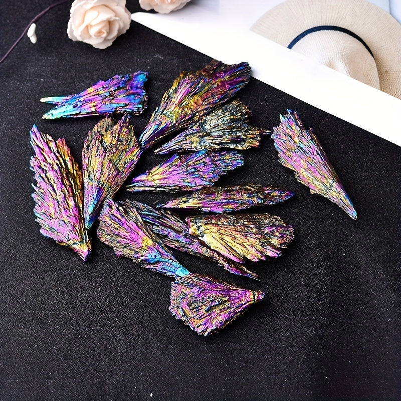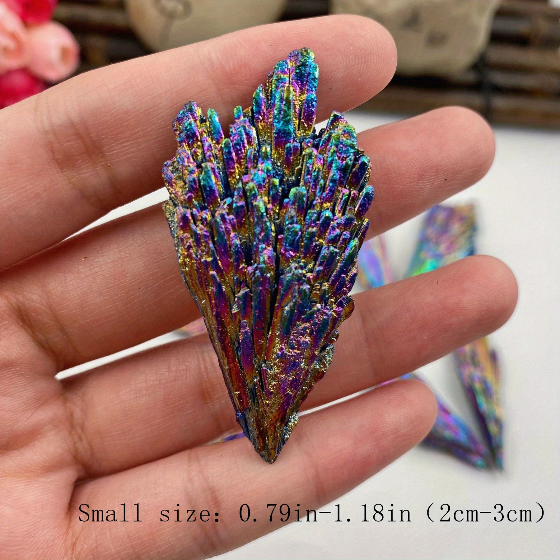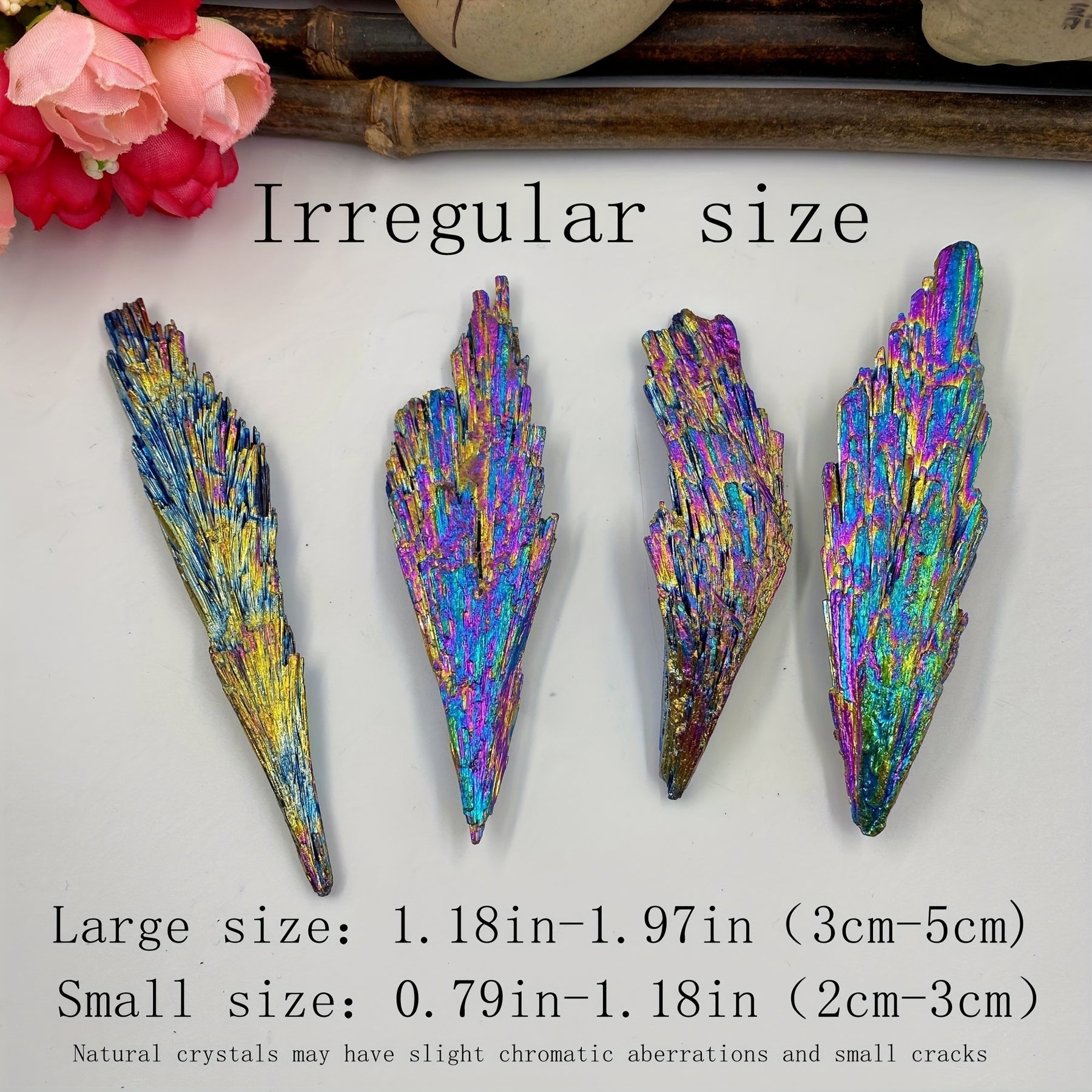 This electroplated colorful raw tourmaline stone exhibits a stunning rainbow peacock flame feather pattern. It is a beautiful and unique mineral specimen that can be used as an ornament or for display.