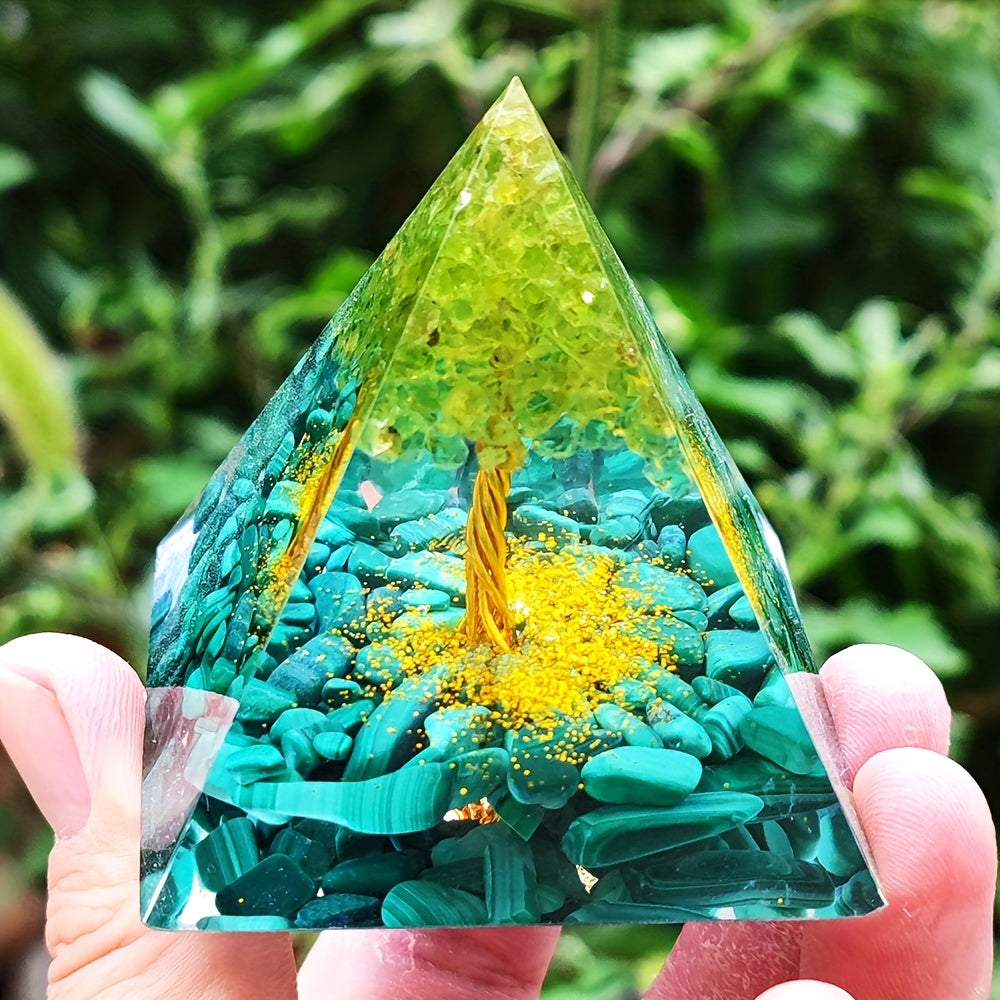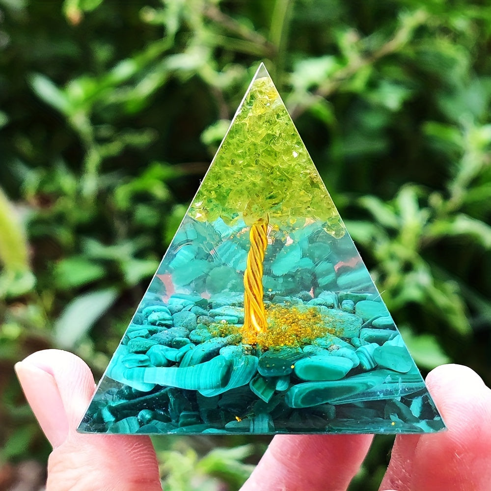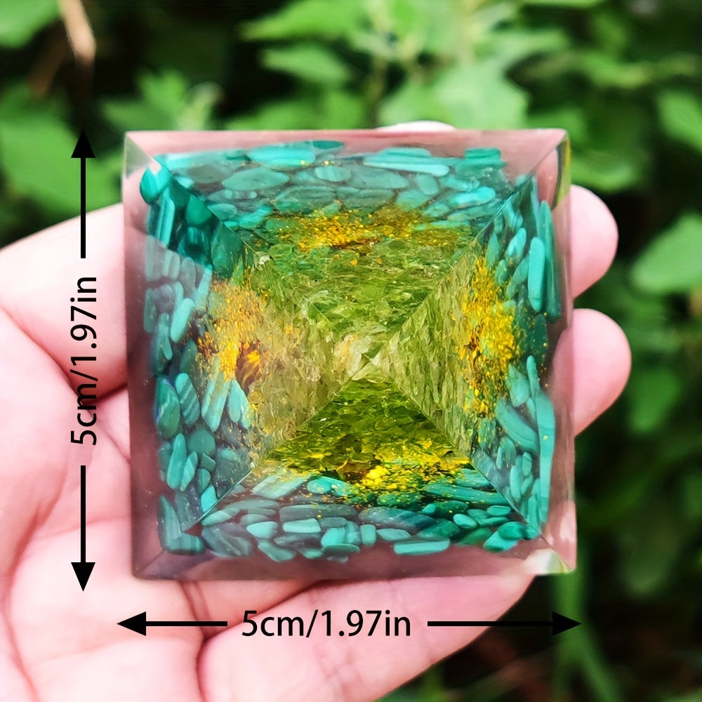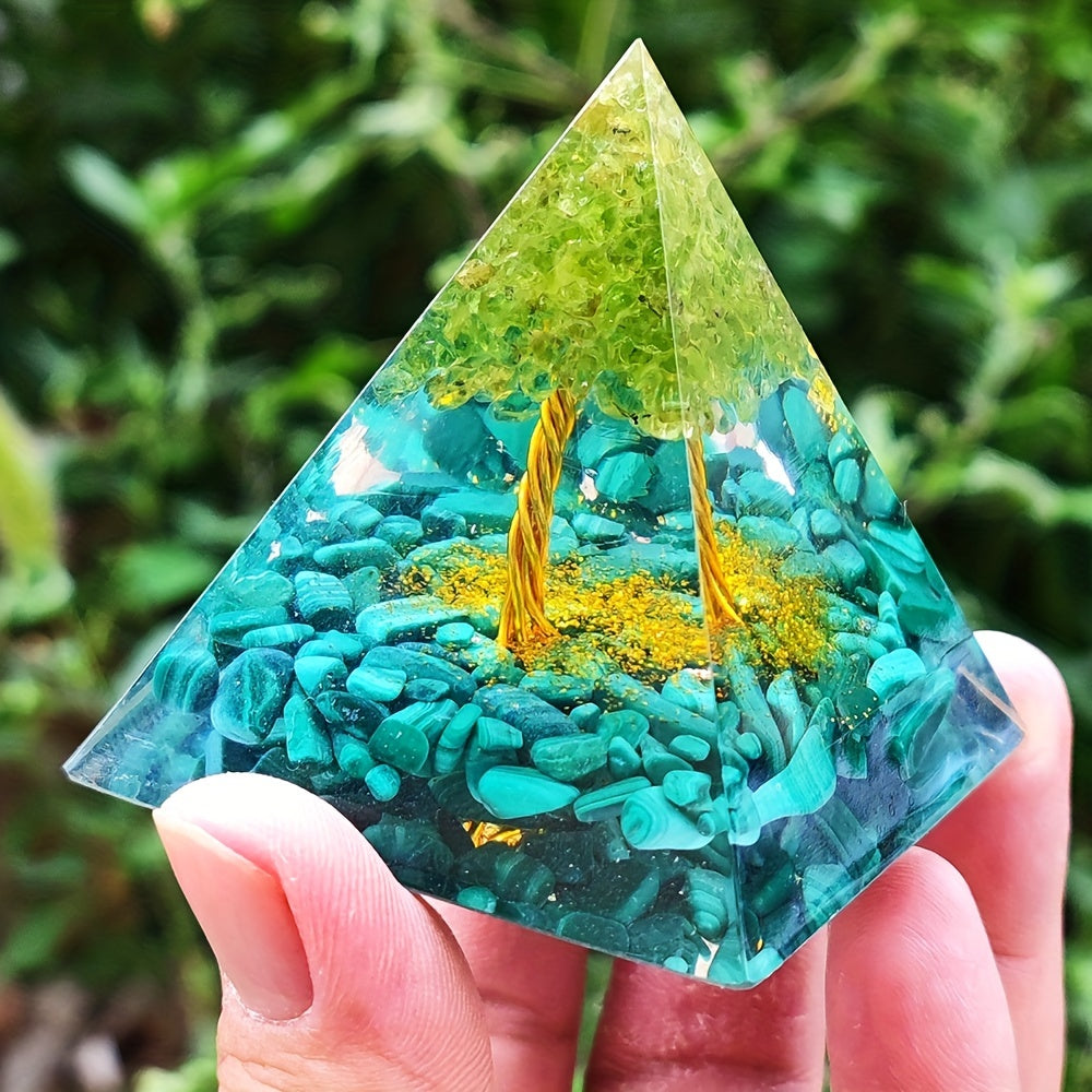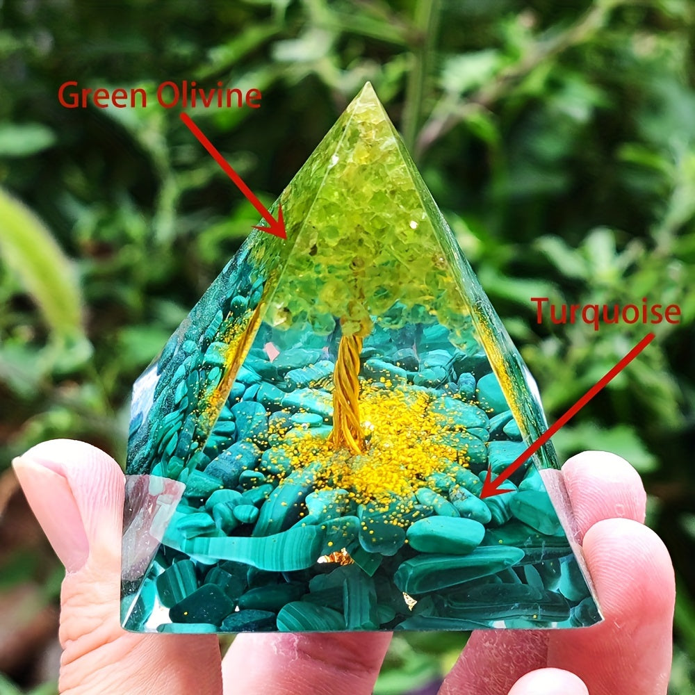 Enhance your space with this orgonite pyramid that combines the power of natural stone crystals for healing, reiki, meditation, and energy generation. Perfect for home decoration and a spiritual atmosphere.