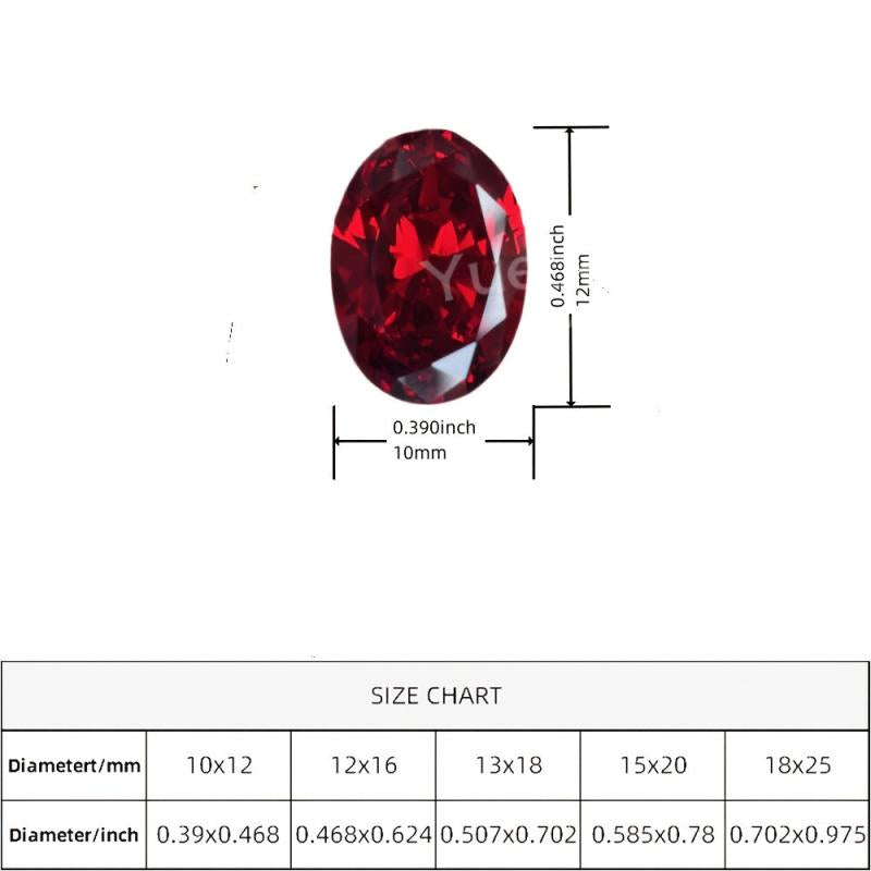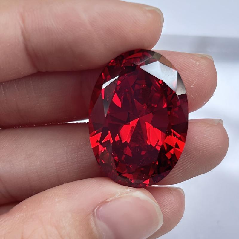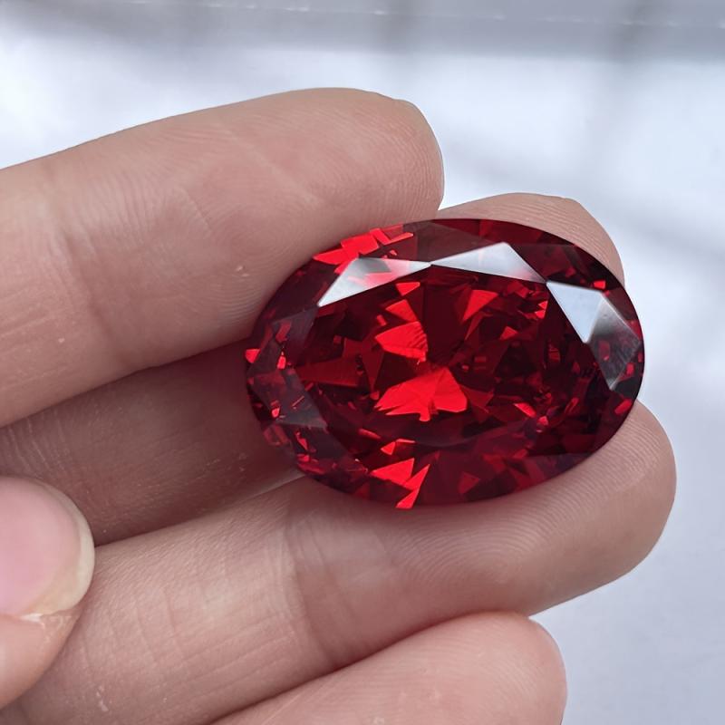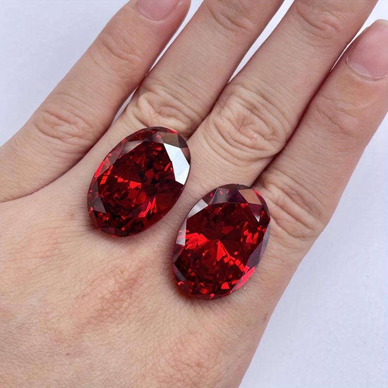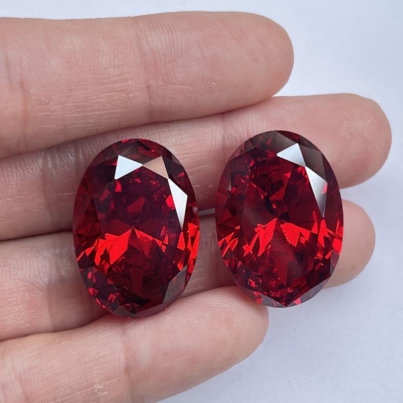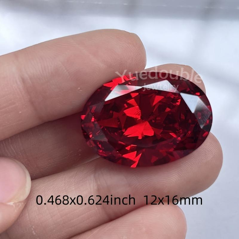This oval cut garnet red synthetic cubic gemstone is perfect for jewelry making, such as rings and pendants. It measures from 10x12mm to 20x23mm.