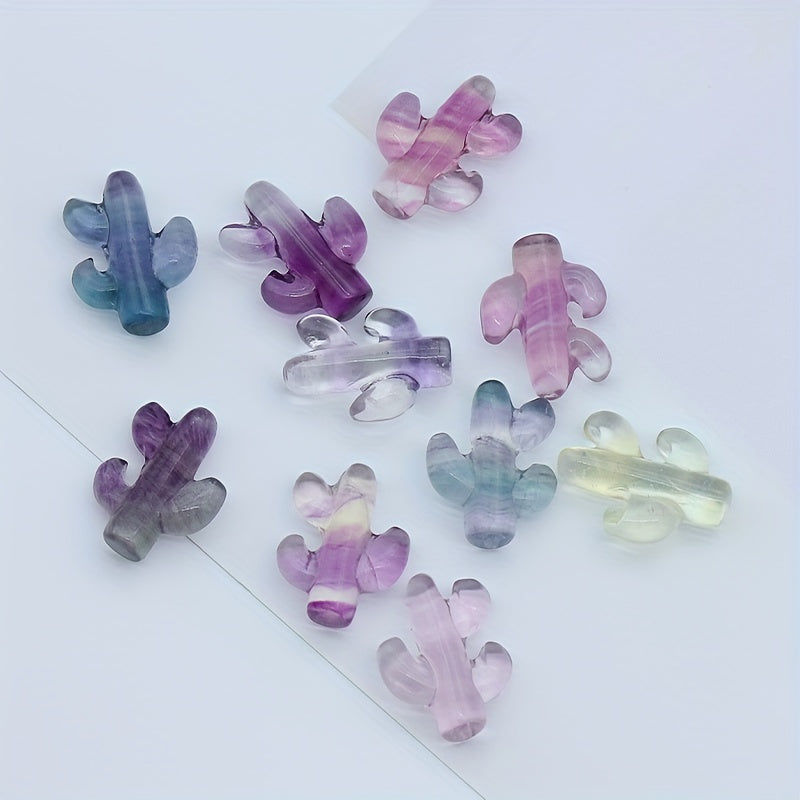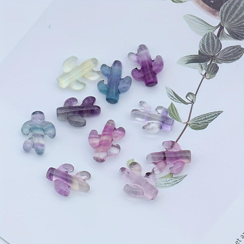 Rainbow Fluorite Cactus Carving Crystal Energy Ornament
