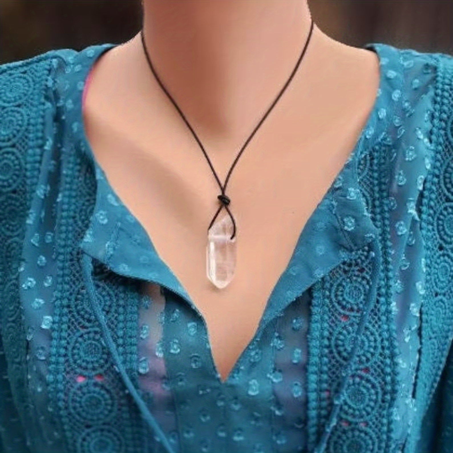 Embrace the raw beauty of this transparent quartz crystal pendant, perfect for meditation and energy balancing. A minimalist necklace that exudes natural charm.