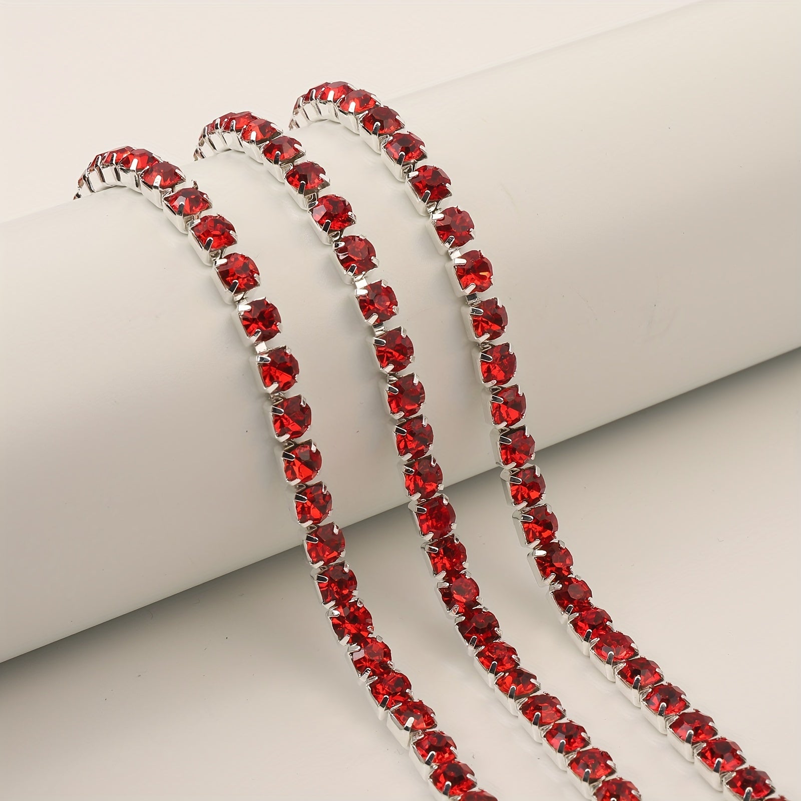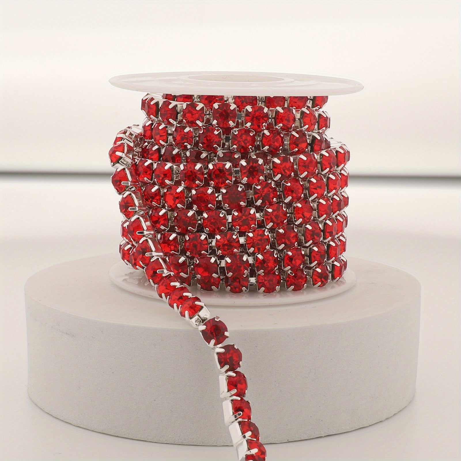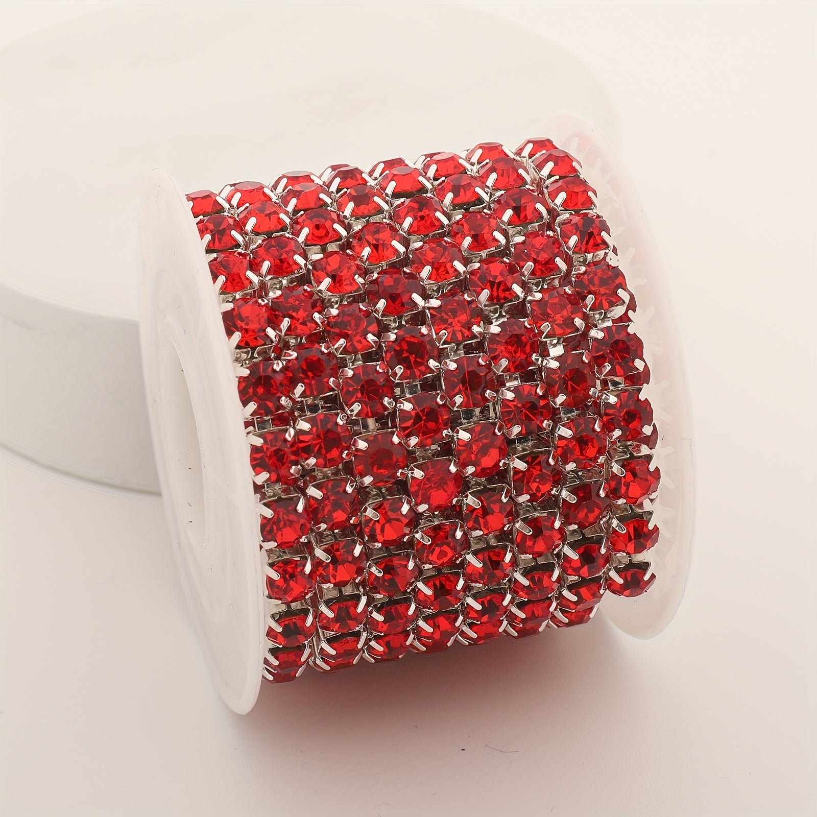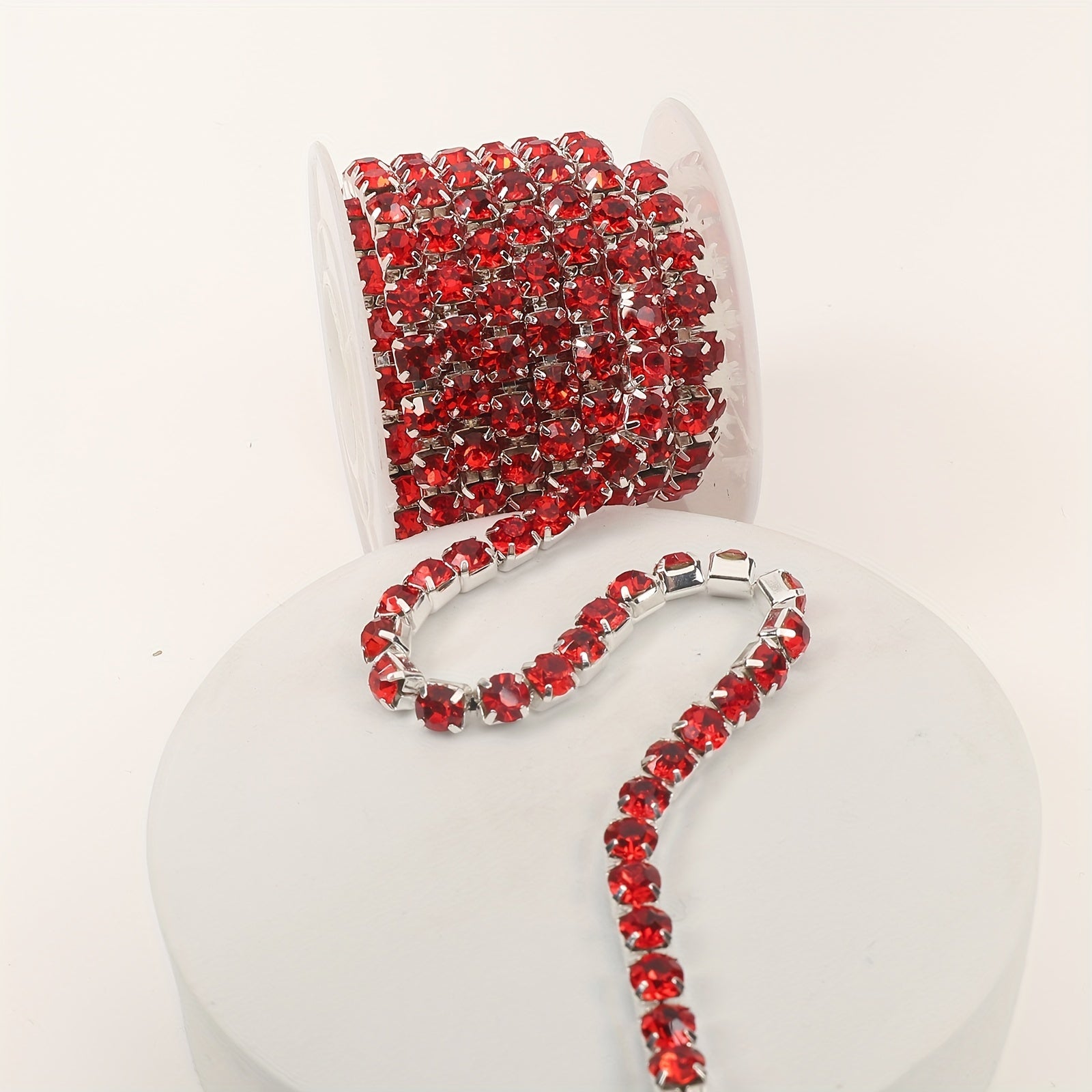 Get creative with this red rhinestone chain trimming that is perfect for adding a touch of sparkle to your jewelry making projects.