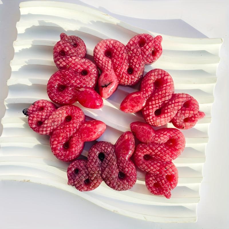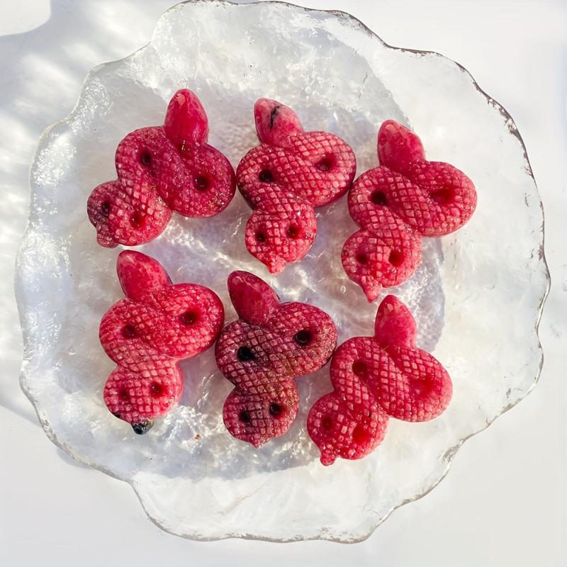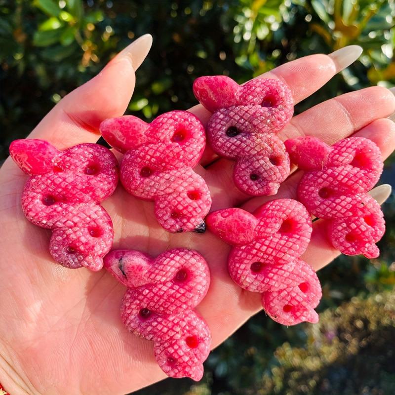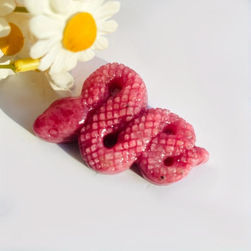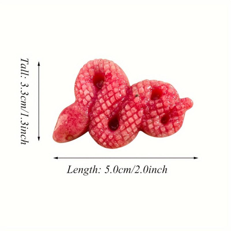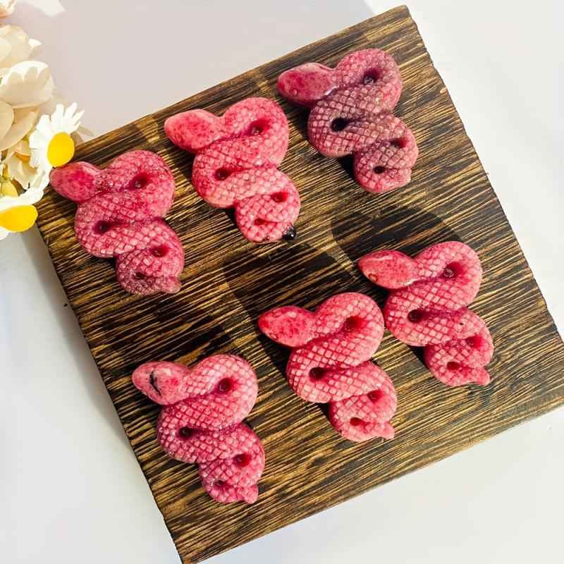 This Rhodonite Quartz Snake statue features a polished serpent design in natural pink to red color. Perfect for enhancing the Feng Shui of your space.