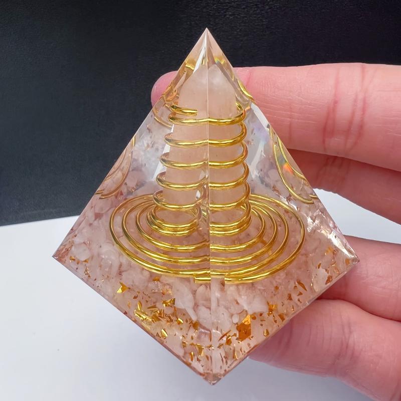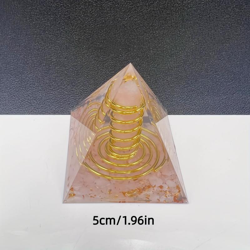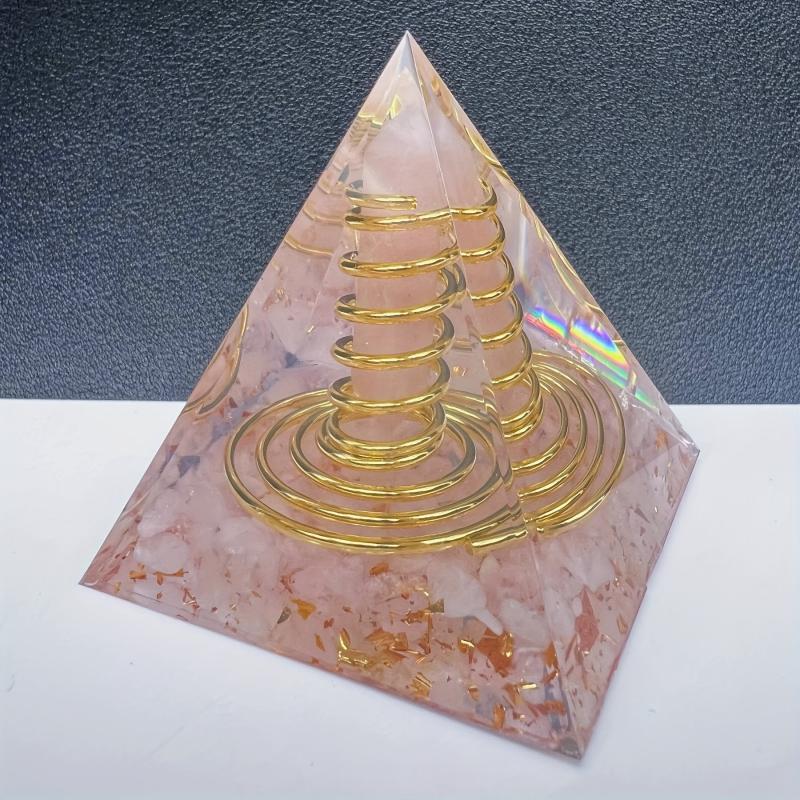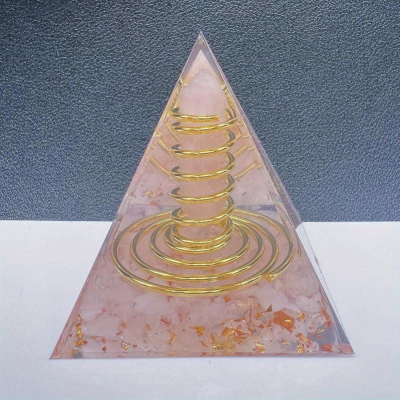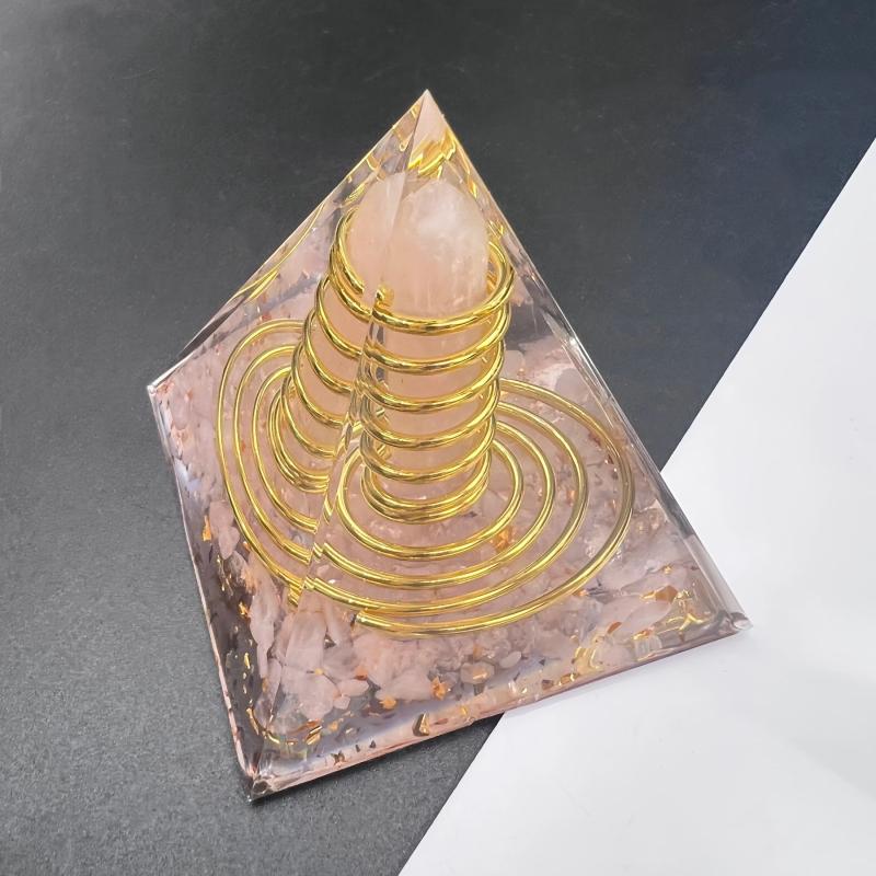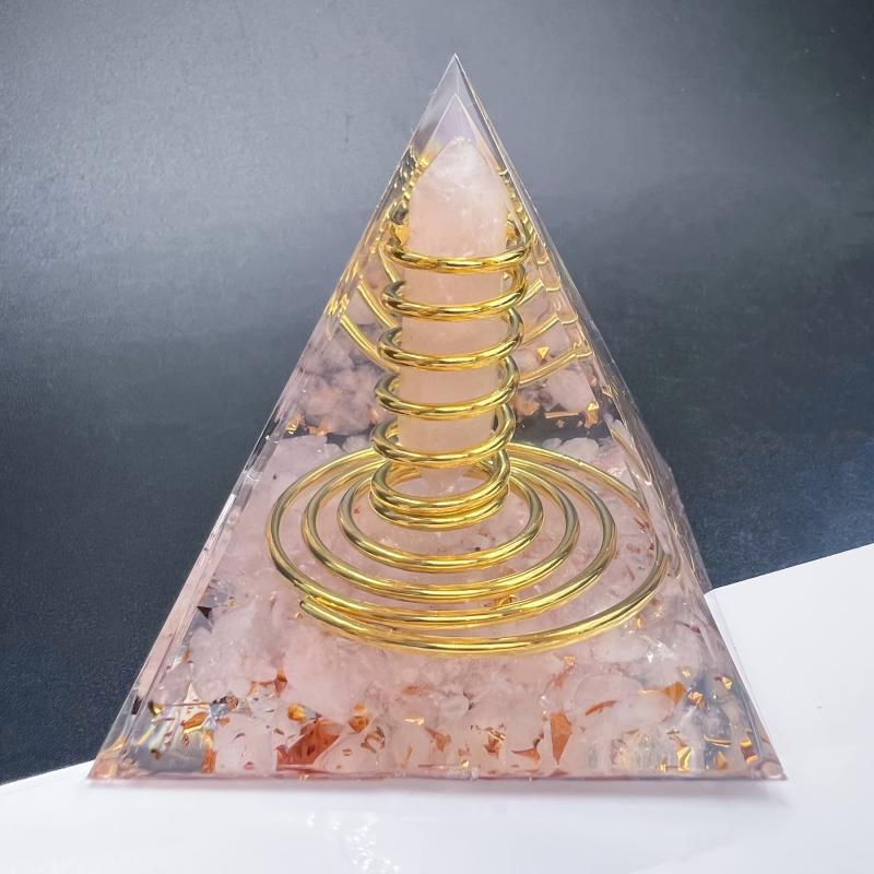 This orgone pyramid features a natural stone rose quartz chip double terminated point with wire copper. It is a beautiful and powerful addition to your space.