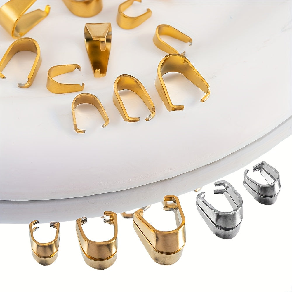 These stainless steel pendant clasps are perfect for creating necklaces, charms, and bead accessories. Each pack contains 50 pieces of high-quality clasps that are durable and long-lasting.