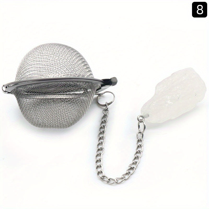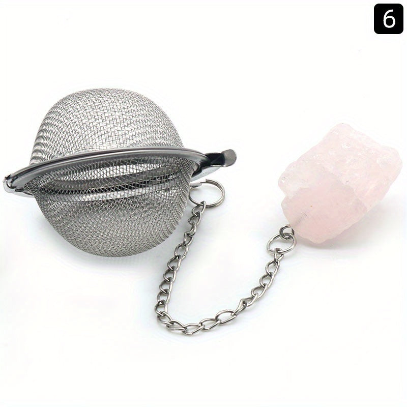 This 304 stainless steel tea infuser ball strainer features natural crystals healing stones, including clear rose quartz. Perfect for brewing your favorite loose leaf tea.