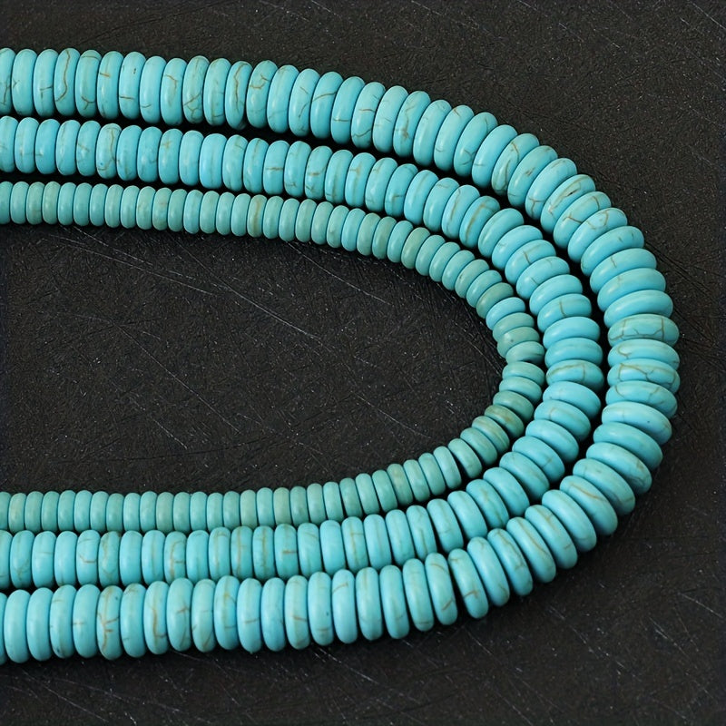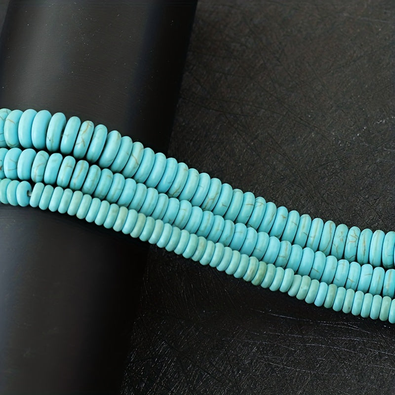 These beautiful turquoise wafer beads are made from natural stone, perfect for beadwork and creating stunning jewelry pieces. Use them to design unique necklaces, bracelets, and more.