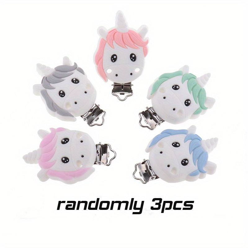 Get these adorable Unicorn Silicone Clips for your DIY jewelry projects. They come in a set of 3 with 2 holes, perfect for hanging decorations and accessories.