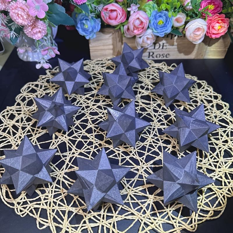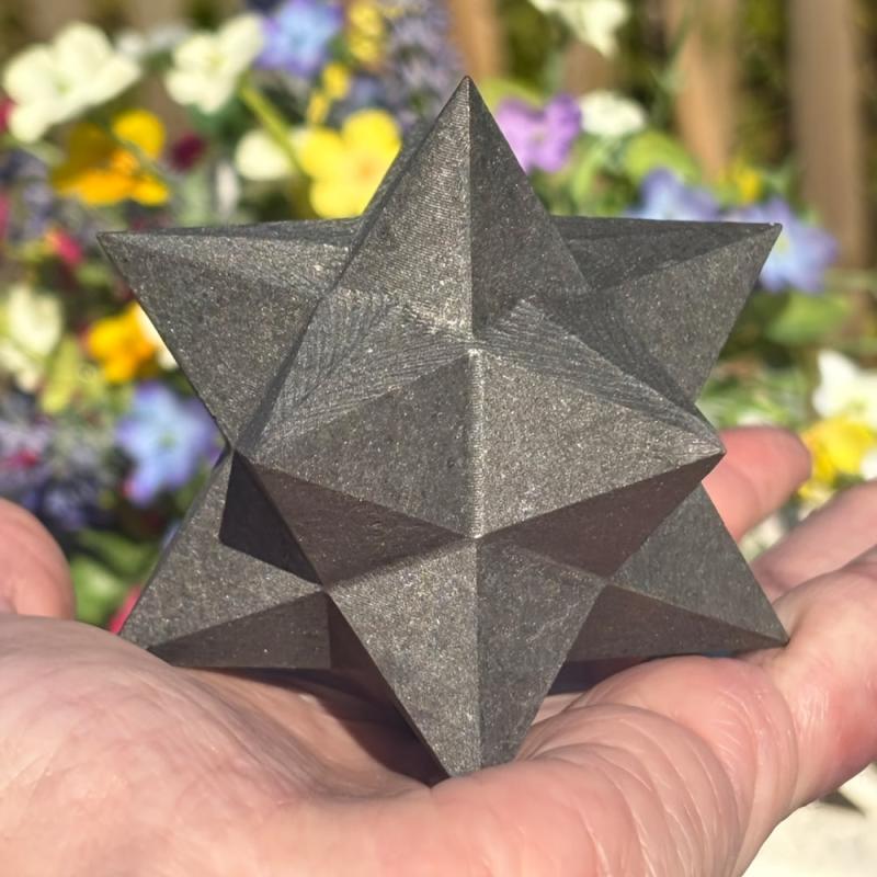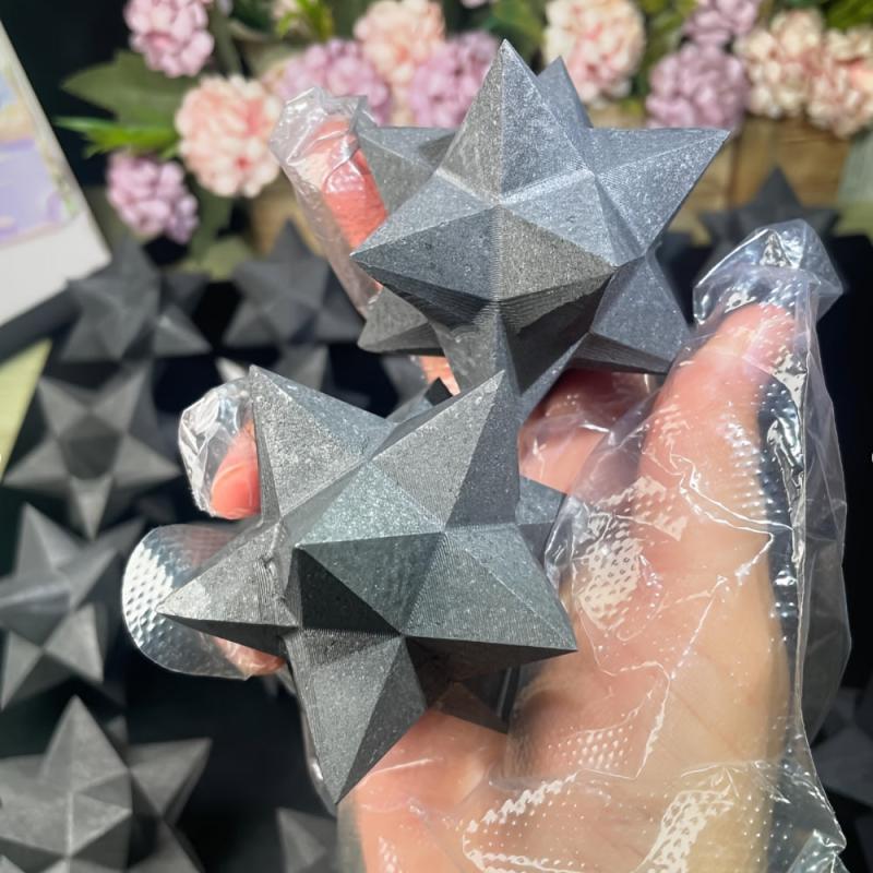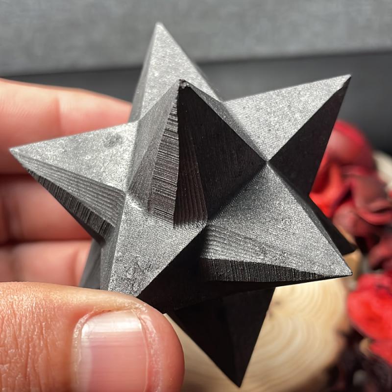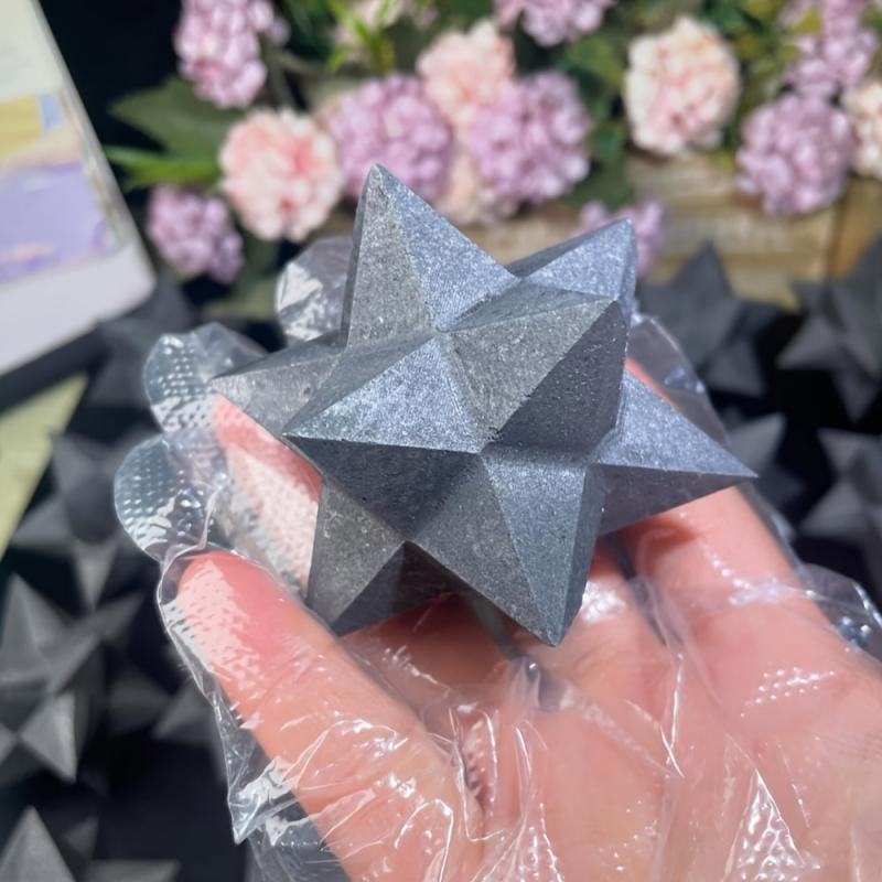 This bohemian style hand carved Merkaba statue made of Shungite mineral stone is a perfect addition to your home decor. Its black and grey faceted design is a must-have gift for the holiday season.